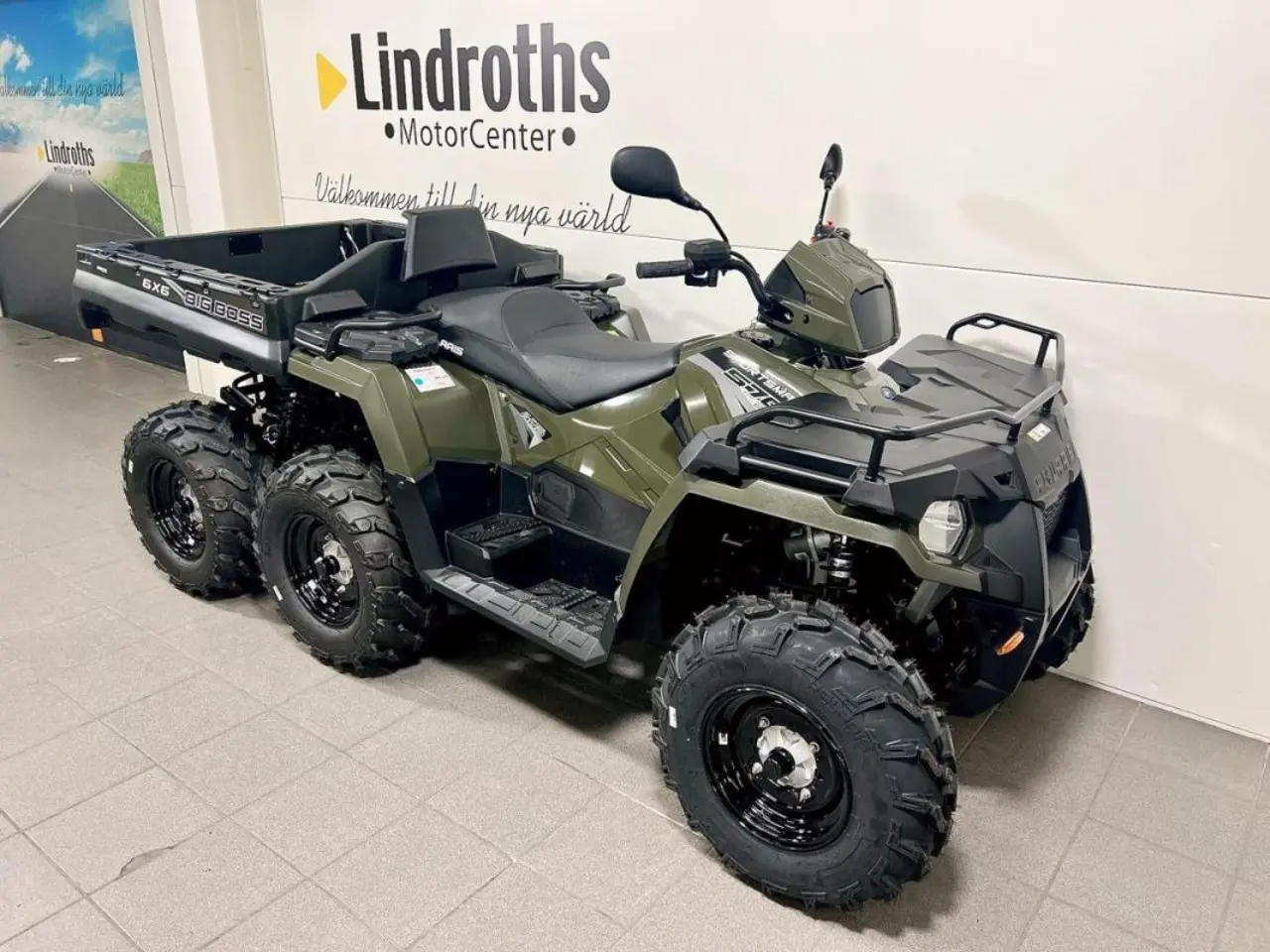 Nya Polaris Sportsman 570 EPS 6x6 2022 Sage green! För dig som vill vara kungen i skogen. Sportsman 6x6 tar sig fram på dem blötaste och knöligaste ställena tack vare sin On Demand 6-hjulsdrift med elektronisk diff. Elektroniskt servo. Ställbar 4x6, 6x6 samt ADC. ( Motorbroms vid nedförsbacke ). 570 ProStar motorn som levererar hållbarhet, vridmoment och effekt i toppklass. Traktor b registrerad. Fällbart flak. Finns i våran butik. Vi erbjuder förmånlig finansiering till... kampanjränta 3.99% snabbare, smidigare och billigare än Banken, Vi ordnar med frakt. Välkommen in i butiken och beskåda denna maskin och många fler! Info@lindroths.se / 0920 22 55 00