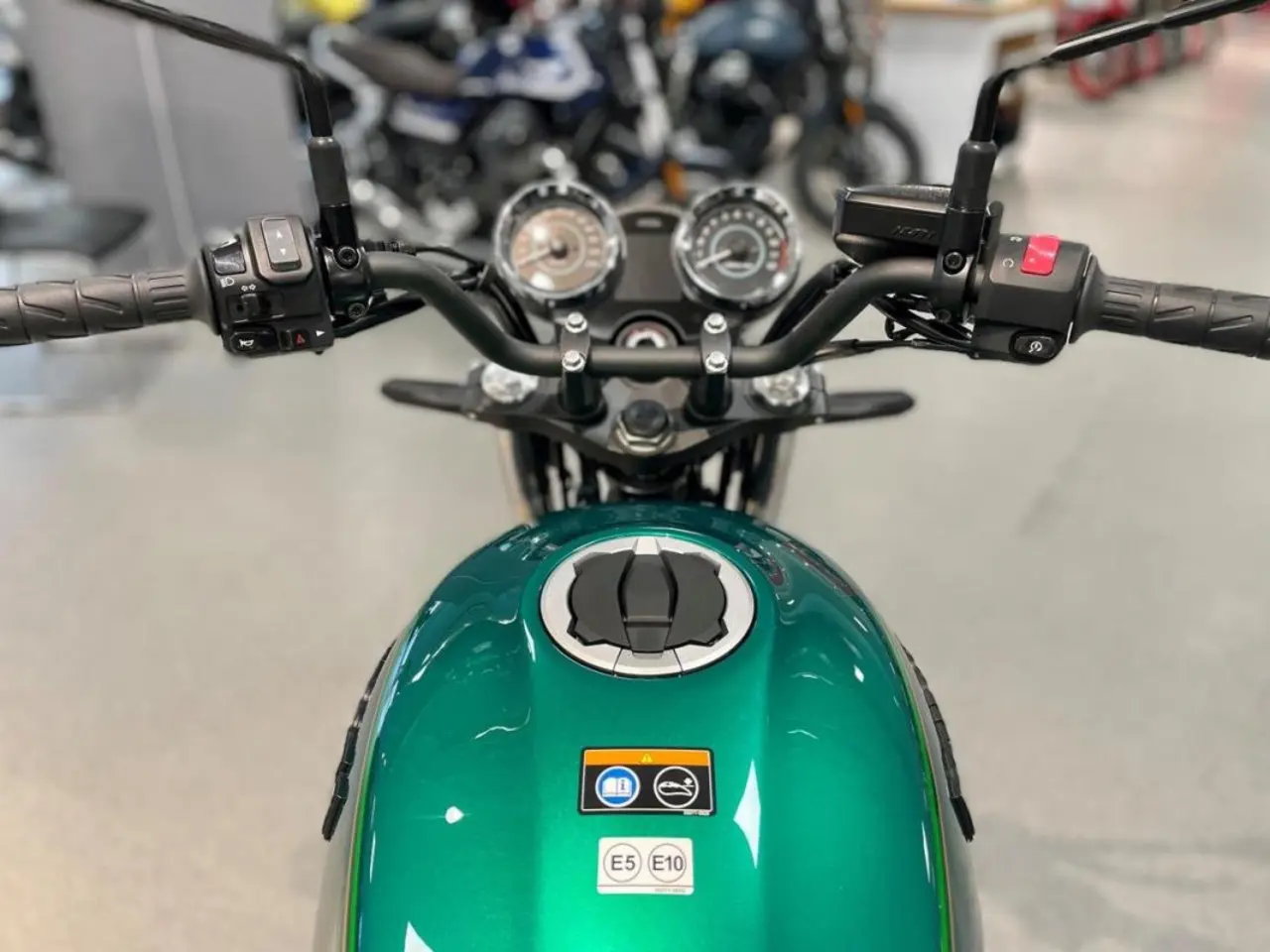 Med klassiska runda LED-lysen, analoga mätare, 70-tals inspirerad konstruktion och färger tillsammans med den tvåcylindriga motorn sätter den referenspunkten för retro-segmentet.