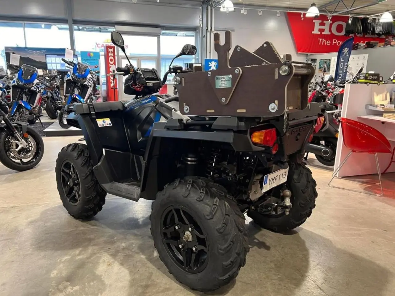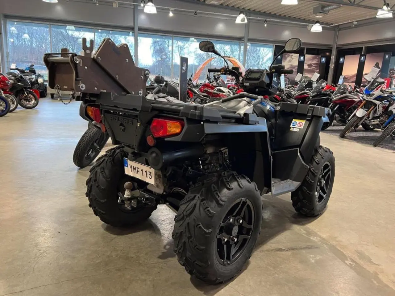 Utrustad med: Drivaxelskydd, ekagårds låda för motorsåg, i och urkopplingsbar fyrhjulsdrift, dragkrok.