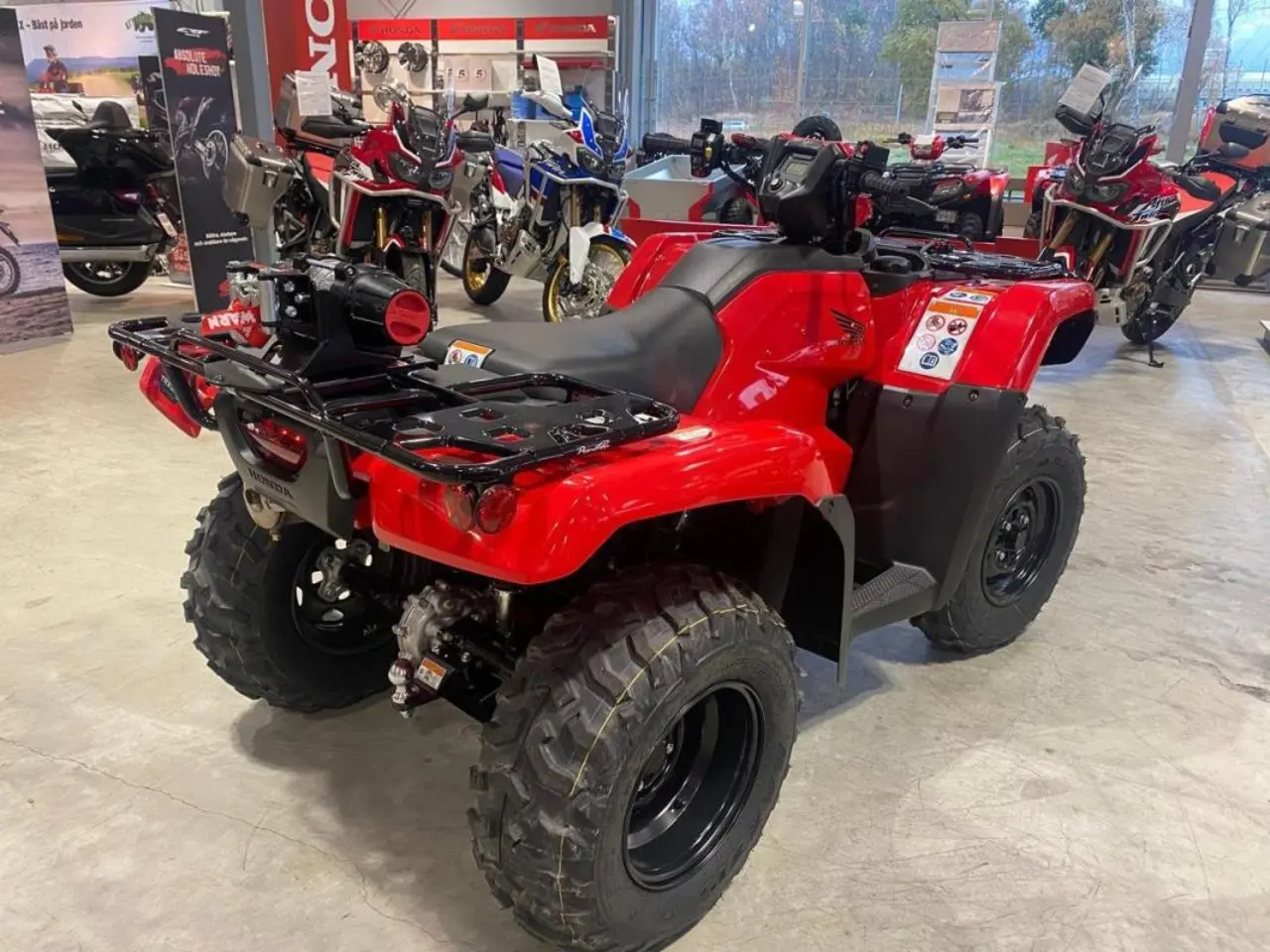 Denna maskin är extra utrustad med: Warn 25VRX vinsch. radiostyrning till vinsch. flyttbart fäste för vinsch. hasplåt. drivaxelskydd. bröstplåt. 5 års Honda garanti. Med sin nu större motor på hela 518cc med mer effekt och bättre vridmoment har Honda Foreman blivit ett ännu bättre arbetsredskap. Den 5-växlade lådan som manövreras med knappar på styret gör att du är ”bara ett knapptryck” från att alltid ha rätt växel. Denna kombination gör att motorns kraft alltid går direkt ner i marken vilket ger bästa möjliga drift i all situationer. Honda TRX har dessutom motorbroms på samtliga fyra hjul om... fyrhjulsdriften är inkopplad. Backen är nu el-styrd så med hjälp av knapp på vänsterhandtaget är det bara att trycka in den och “växla ner knappen” så går backen i oavsett vilken växel som ligger i. Den raka bakaxeln är det optimala valet vid körning med tyngre släp, TRX’ns geometri bibehålls och vagnens tyngd påverkar inte fjädringen. Den automatiska diffbromsen hjälper till vid svår terräng och skulle det behövas kan man lätt koppla in den elektroniska diffspärren till framhjulen och få maximal drift på samtliga hjulen. Den elektriska styrservon gör körningen lätt och behaglig oavsett vilken terräng man är i. Honda TRX520FE TRX500FE TRX520 TRX500 FE TRX 520FE 500FE TRX 520 500 FE ATV Fyrhjuling Finansiering Vi har nöjet att kunna erbjuda denna Honda TRX520FE Foreman 2021. Vi byter in er mc, ATV eller moped. Varmt välkomna önskar vi på Ahlqvist motorcyklar / Honda Mc Center Göteborg. Ring oss på 031-7466070 (vi reserverar oss för felskrivningar)