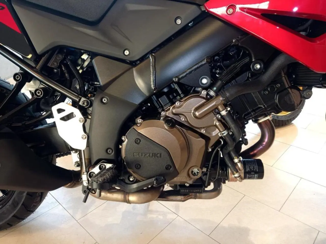 V-STROMs 1037cm3, 90-graders V-twin har mer toppeffekt än någonsin tidigare, medan den behåller sitt starka bottendrag och utmärkt bränsleekonomi samtidigt som den uppfyller utsläppsnormerna över hela världen. Nya kamaxlar och kolvar matas av ett par 49mm stora, Ride-by-Wire elektroniskt styrda spjällhus som ger smidig, exakt kontrollerad gasrespons samtidigt som det tillåter tillägget av ett mycket exakt farthållarsystem.