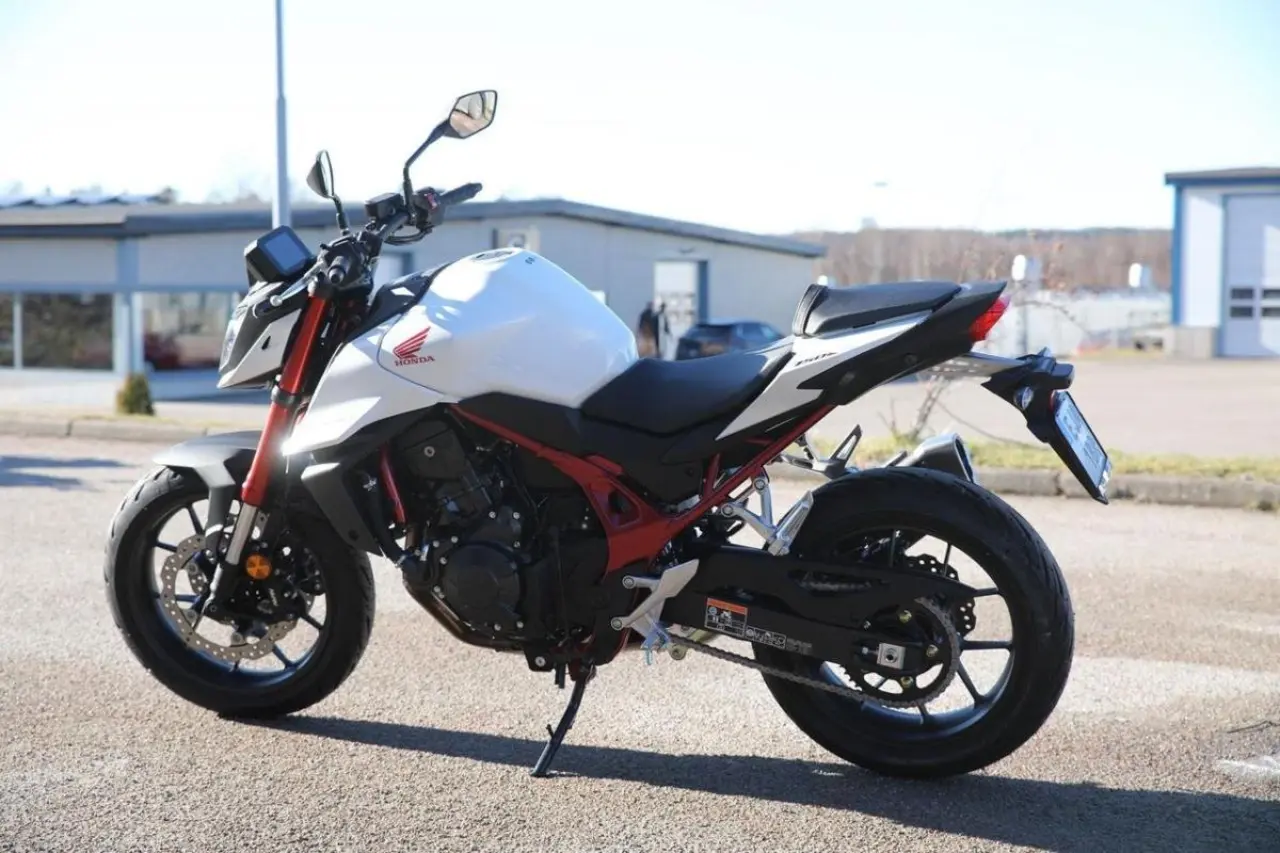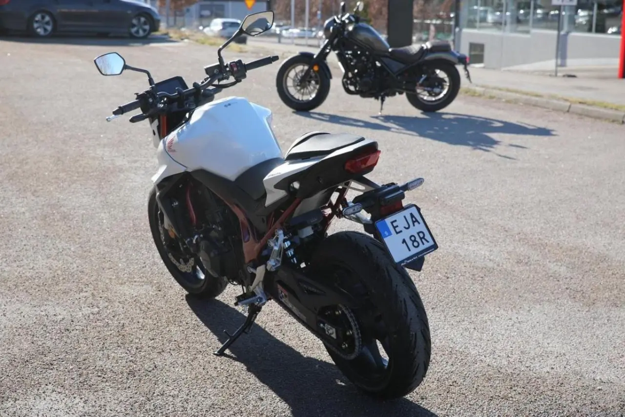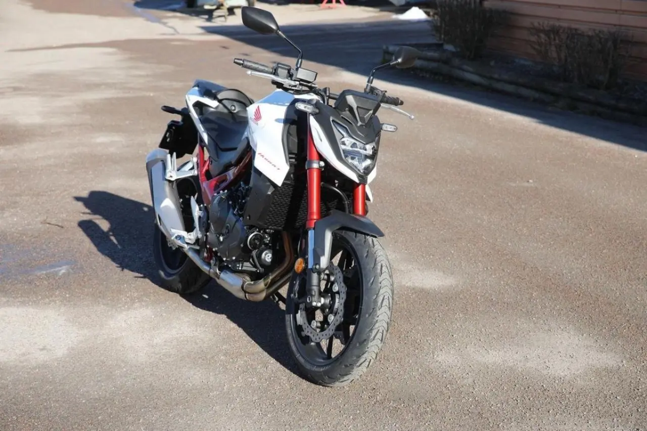 Hondas moderna klassiker Hornet gör comeback! Den pånyttfödda streetfightern levererar klassledande vikt-/effektförhållande med 67, 5 kW 75 Nm och 190 kg. Motorn är en sprillans ny 8-ventils parallelltwin med massor av kraft i mellanregistret och ordentligt klipp på topp. Ramen är också en helt ny konstruktion med fokus på låg vikt och smidiga köregenskaper. Självklart har maskinen modern teknik som elektronisk gasreglering, antispinn med tre nivåer och inbyggd Wheelie Control,... plus tre nivåer av motorbroms och motoreffekt. Fjädringskomponenterna kommer från Showa med en 41 mm inverterad SFF-BPTM-gaffel fram och enkeldämpare med Pro-Link bak. Den effektiva frambromsen har dubbla radialmonterade fyrkolvsok med rejält bett. Instrumenteringen består av en lättavläst 5-tums färgskärm med Hondas röststyrning för smarttelefon och bland övrig elektronik finns LED-lampor runtom, självavstängande blinkers och nödbromsvarning.