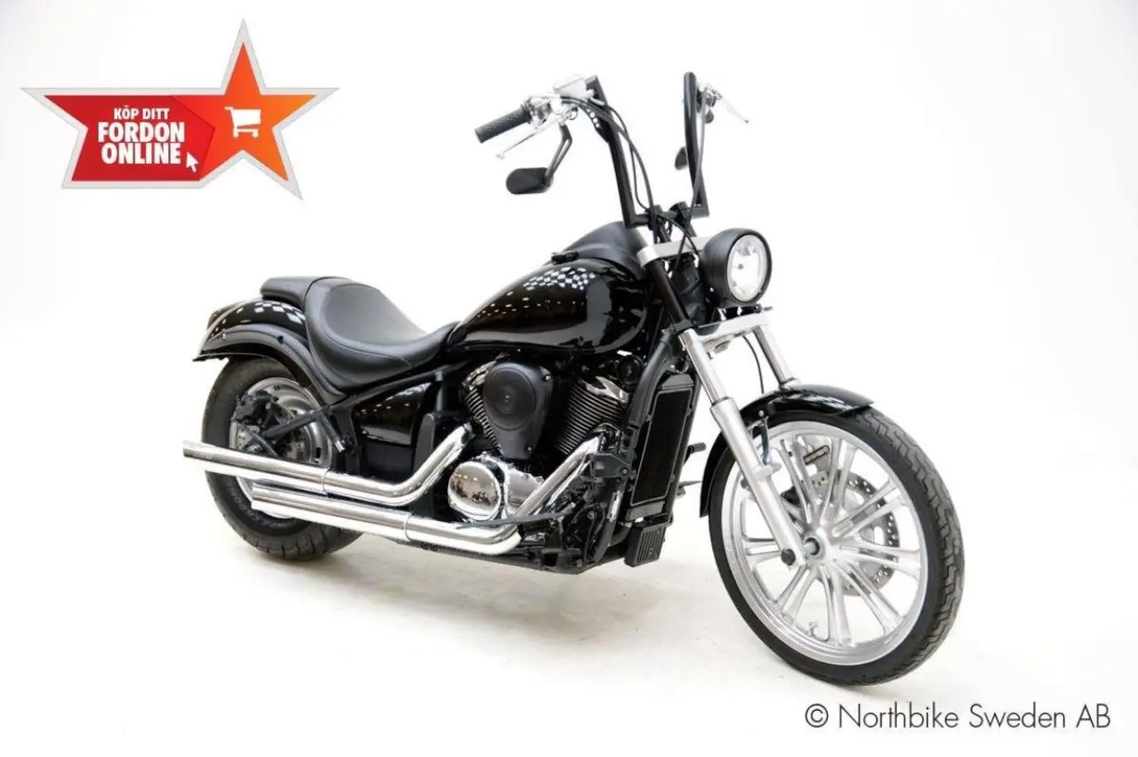 Lättare ombyggd Kawasaki VN900 med rätt stuk! Vance&hines system, footboards, apstyre, miniblinkers, sidomonterad plåt och mycket mer. RegNr:GMZ145