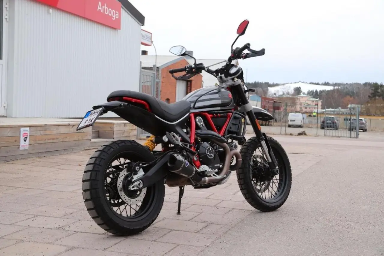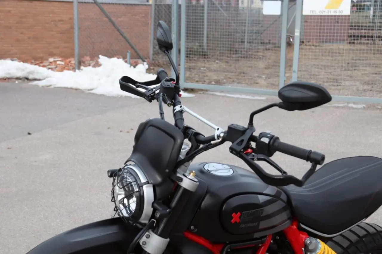 Äntligen har vi fått in den riktigt läckra och unika (nr 160 av 800) Scrambler Desert Sled Fast House. Extremt välvårdad och extra utrustad med många fina tillbehör. Bl.a Termignoni slipon med tillhörande mapp, motorbågar, minblinkers X4, TailTidy, lite svart "ruta", handtagsvärme, hasplåt från EvoTech, oljekylarskydd, handguard protector, styrhöjare, vikbara broms/kopplingsgrepp från Evotech mm.