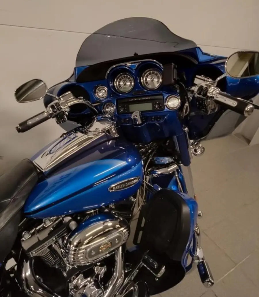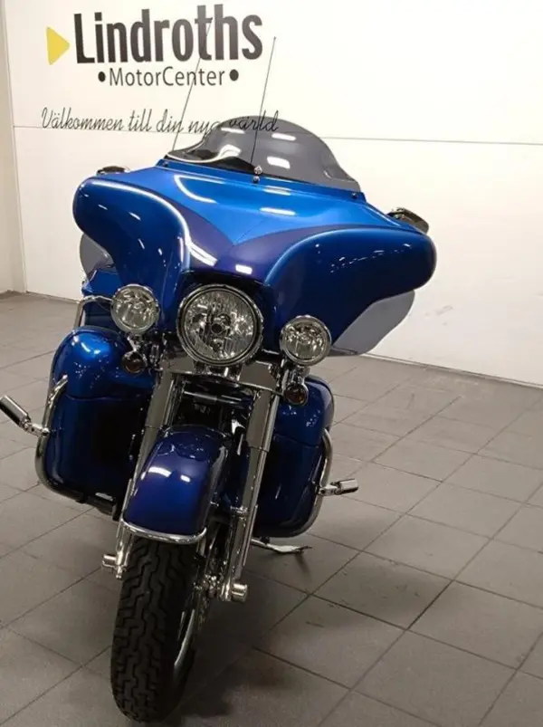 En snygg välskött CVO Ultra Electra Glide i kanonskick. Med en unik två tons blåmetallic.