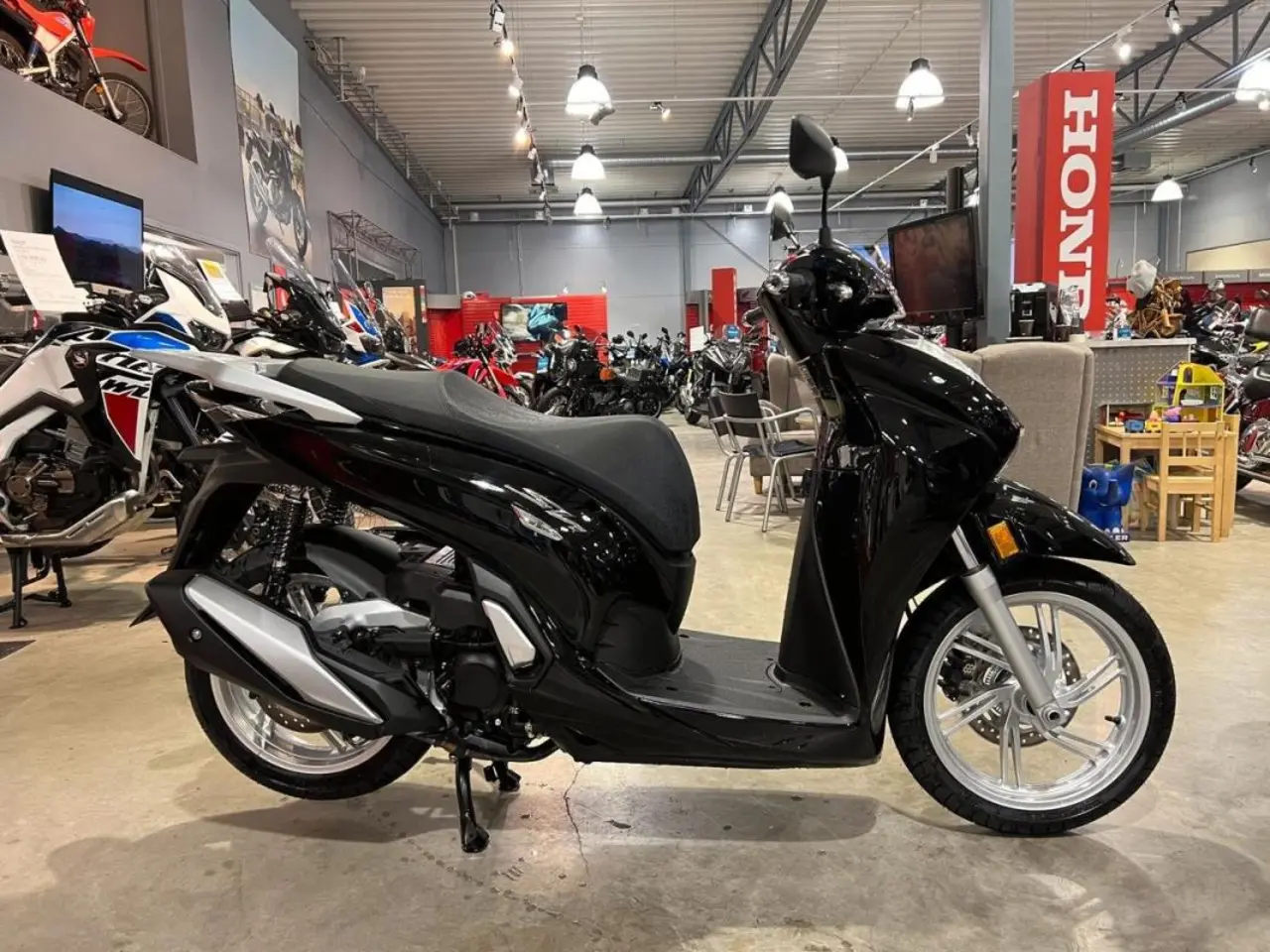 Hondas toppmodell i SH-serien omarbetades ordentligt till 2021 med större och starkare motor och uppfräschad design. Modellen är oförändrad till 2023. SH350i är utrustad med smartnyckel keyless, LED-lampor och USB C-uttag under sadeln.