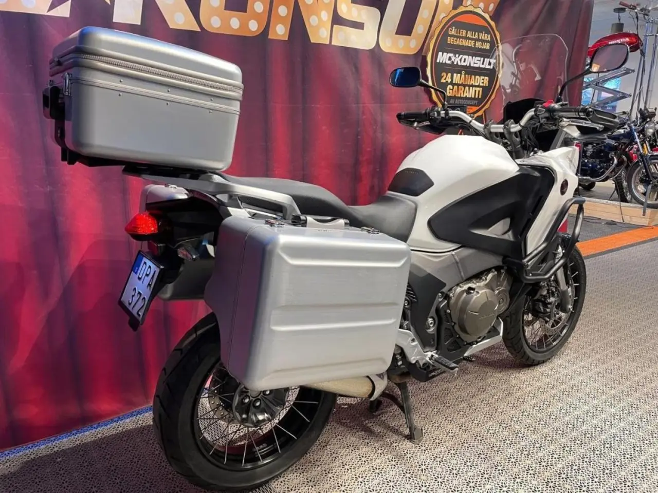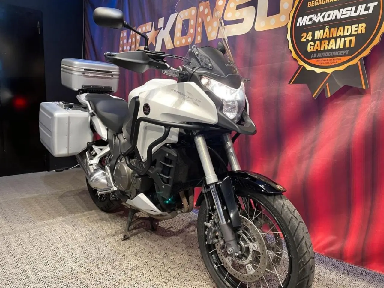 Honda VFR 1200 X med deras beprövade V4, en perfekt äventyrstourer! Sidoväskor och top-box. Motorbågar. Handtagsskydd. Kardan och ekerhjul. Vi gör service innan leverans.