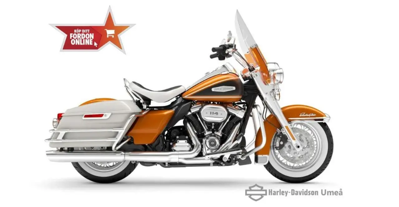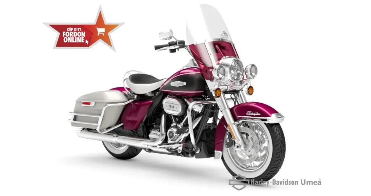 H-D Electra Glide Highway King! den nostalgiska känslan av klassiska åkturer på slingrande landsvägar. Highway King är inspirerad av vår ikoniska FLH Electra Glide från 1968 och förenar klassisk styling med modern komfort och prestanda. Maximal kontroll tack vare elektroniskt länkade bromsar för bättre kurvtagning, kurvtagnings-ABS, antispinnsystem för... kurvor, vridmomentreglering för bakhjulet och Vehicle Hold Control (VHC).