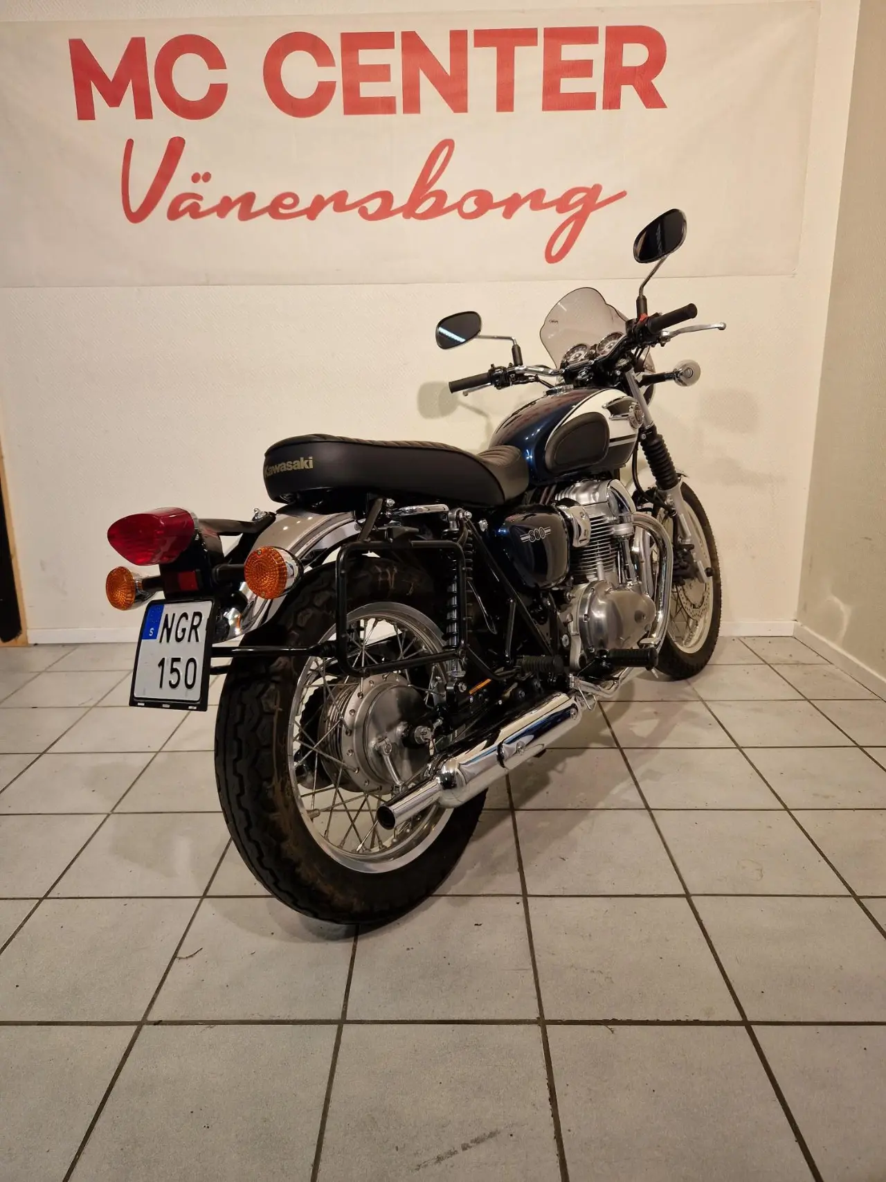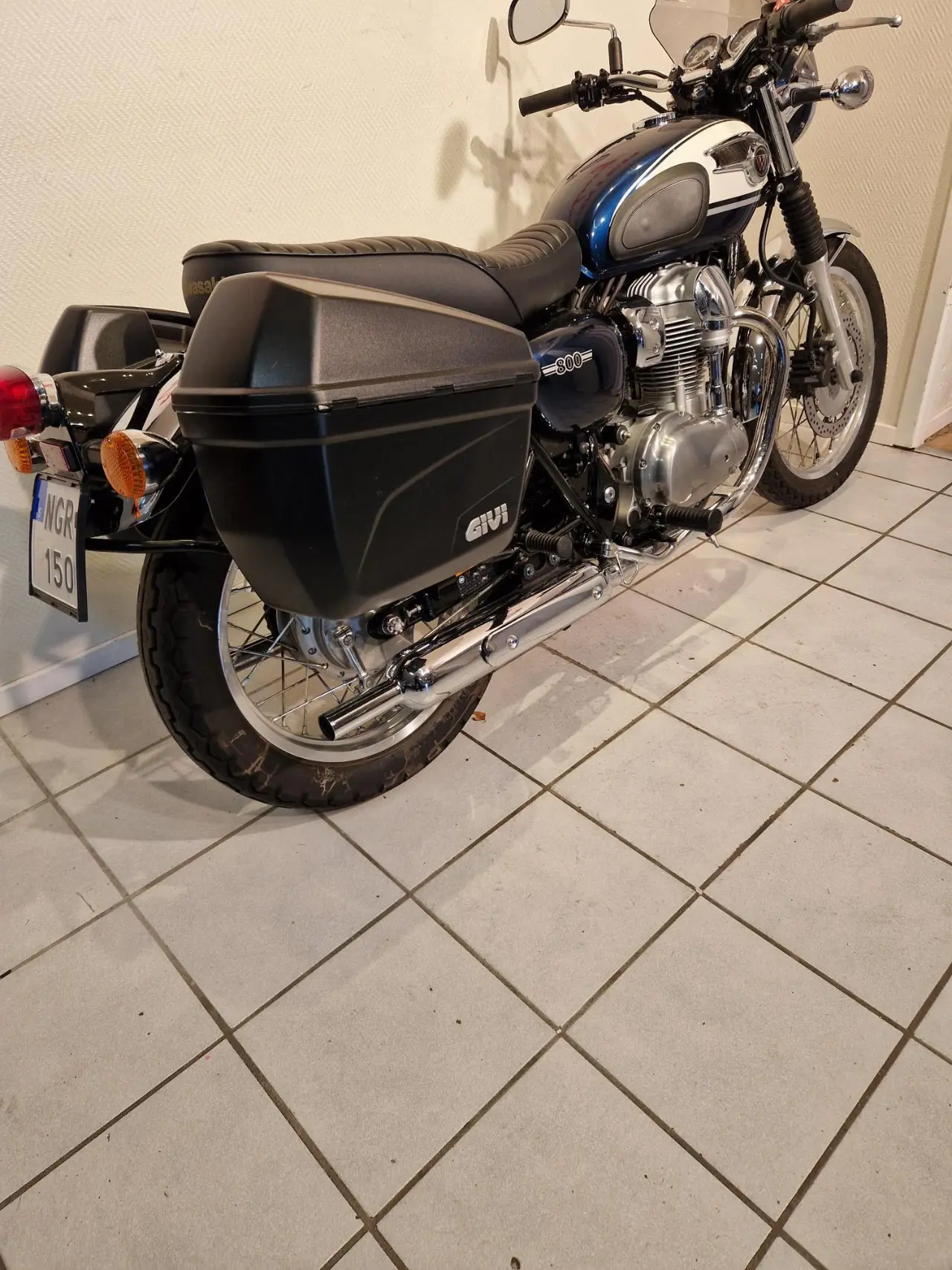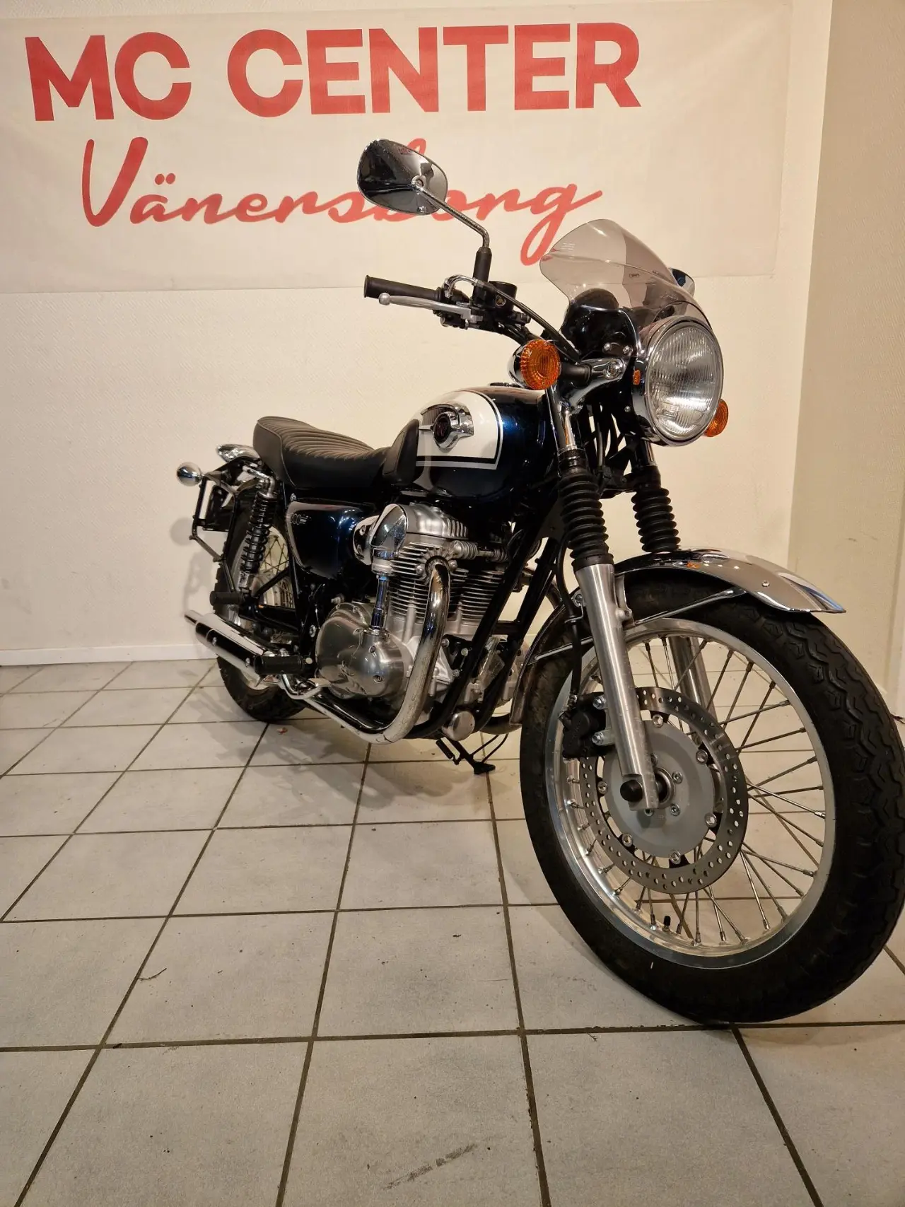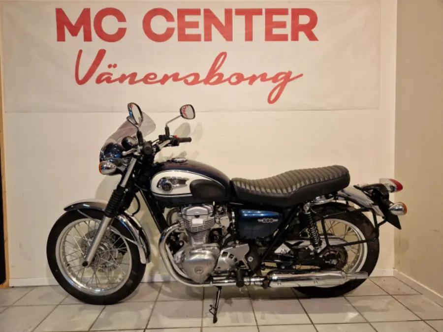 en W800 i fint skick med bra däck, nyservad inkl ventilkontroll, väskor, ruta, säljes åt kund, finans ordnas!
