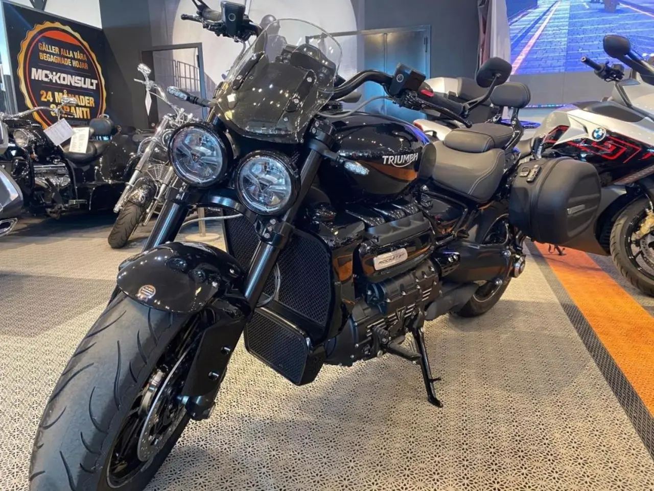 Rocket 3 GT i stilen Triple Black. Jobbet är utfört av proffs för att likna det fabriksbyggda originalet. Kom in till oss och granska detaljarbetet. Du blir inte besviken.