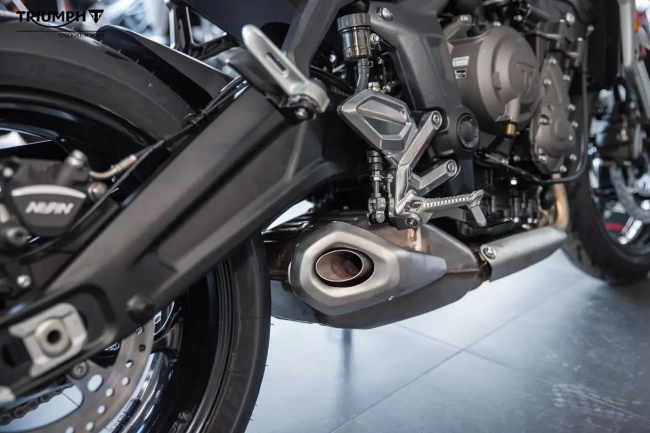 189kg lätt med en ny trecylindrig motor med 80hk och 64nm vrid. 2 körlägen, traction control och ABS. Som tillval finns även integrerad vägbeskrivning via ”My Triumph” connectivity-systemet, handtagsvärme och quickshifter mm. 1600 mils serviceintervaller. Den här hojen passar både den nya och den erfarne föraren. Går att få A2-kompatibel om så önskas.
