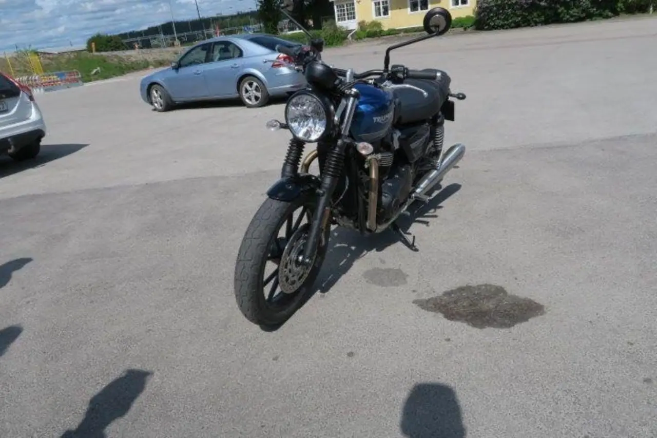 Trevlig nakenhoj, Street Twin har en 900cc motor som levererar 65PS vid 7.500rpm och 80Nm vid 3.800rmp. Street Twin är utrustad med: Brembobromsar fram - 2st Riding modes: Road / Rain - ABS - traction control - USB för laddning. Sitthöjd: 765mm. Tankvolym: 12 liter. Vikt: 216kg. speed twin speedtwin streettwin speed twin