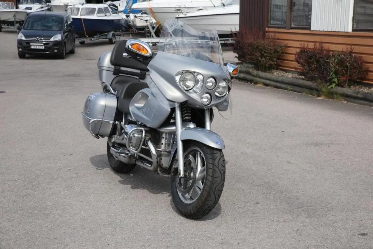 Här är ett fint ex av den bildsköna R 1200CL med rejält tilltagen vindruta, original topbox och sidoväskor i lackat utförande.