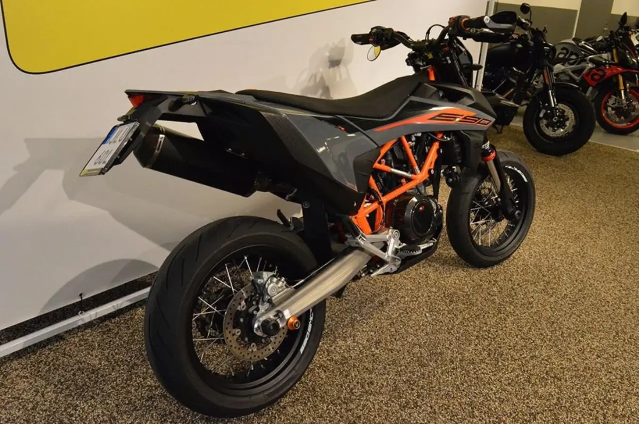 Nu har vi fått in en riktigt smakfullt stukad KTM-motard med rätt utrustning! Endast 1 ägare och levereras nyservad. Redo för lek och bus! Original avgassystem medföljer. Vi tar gärna inbyte och hjälper till med finansiering. Vill du ha din nya hoj hemlevererad så löser vi även detta. Vi har en stor tillbehörsavdelning för både dig och din mc. Välkommen in till oss på MC-kompaniet! Sök Mc kompaniet 690smcr 690smc 701 smc r motard sm