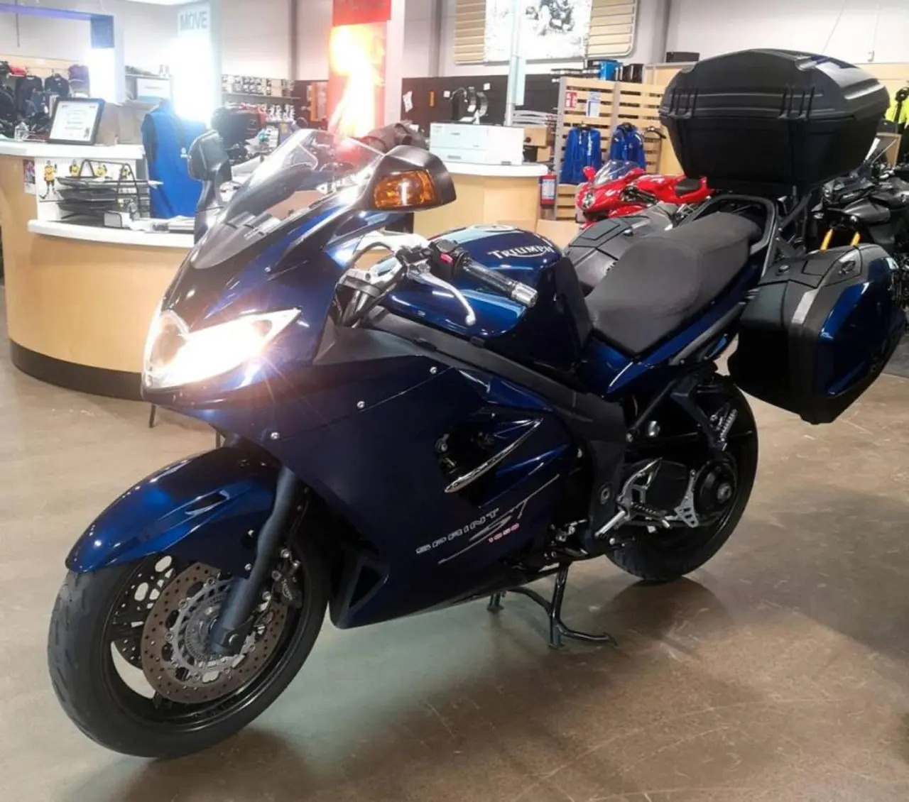 Hej! Triumph ST 1050 ABS med packväskor och toppbox till salu i mint kondition. Sitter extra sport avgassystem. Original medföljer. Handvärmare. Original Triumph packväskor och toppbox. Alla nycklar. Service book. Bra däck och bromsar. Servad i våras med nya olja och filter. Nästa besiktning 31/08/2024. Rullat 6700 mil. Välkommen för visning och provkörning. MVH Yamaha Center Västerås.
