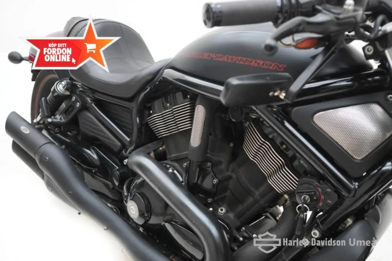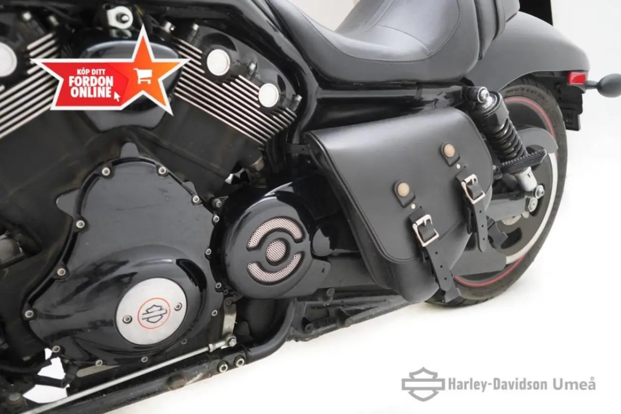 H-D Night Rod! Ett muskelpaket! Utrustad med: Slip-on, Mini blinkers fram, andra backspeglar, Swingväska.