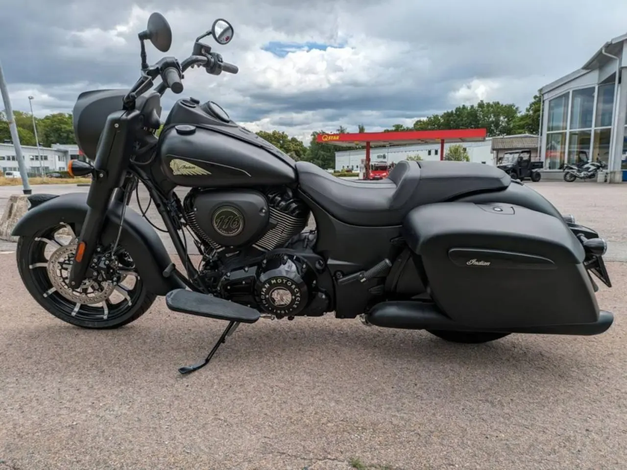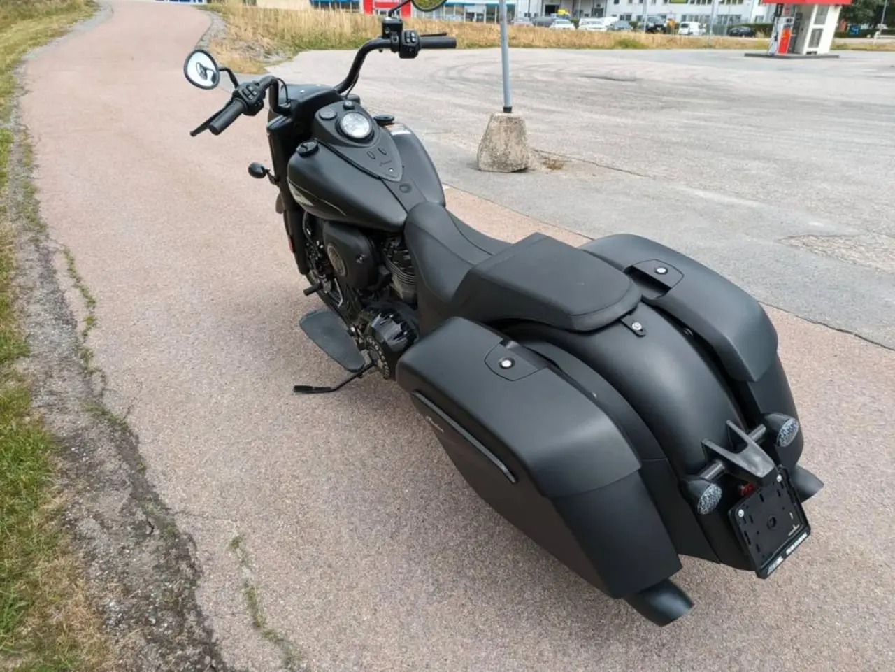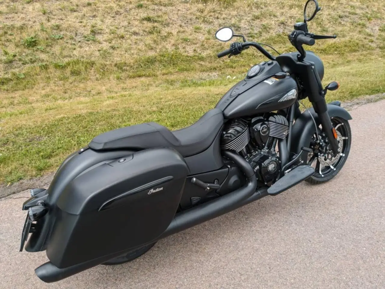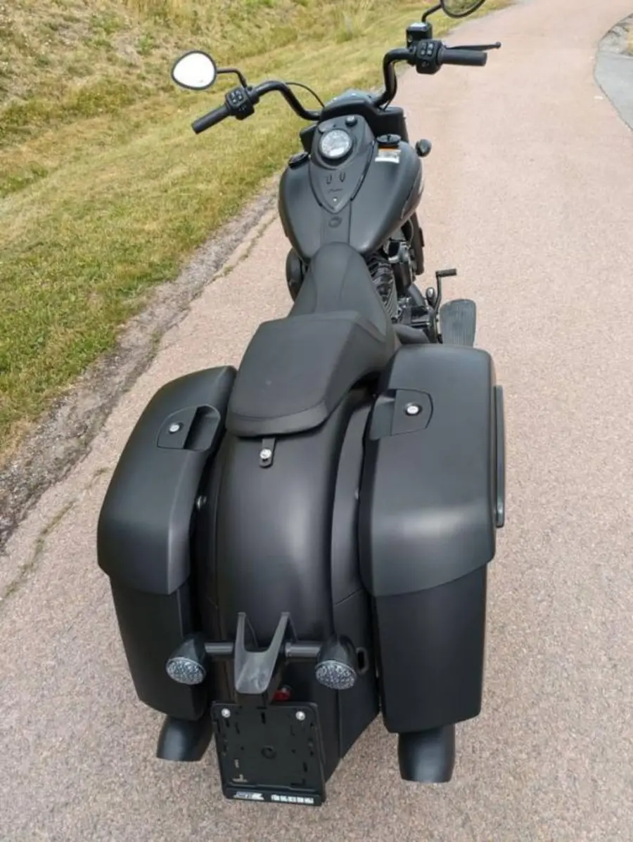 Riktigt cool Bagger Indian med stil och komfort klassisk ren design med Mattsvart finish på hojen.