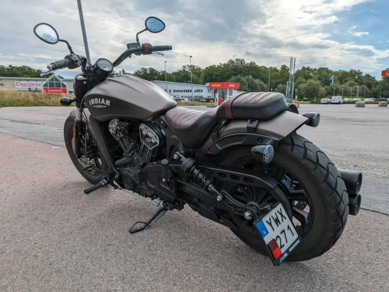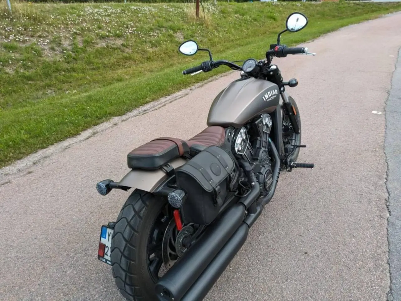 Snygg scout bobber med rätta stuket, Originalväska från Indian,