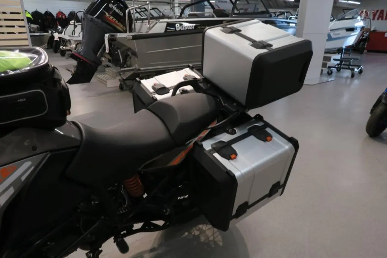 En välvårdad KTM 1190 Adventure utrustad med Sidoväskor, hasplåt och kylarskydd