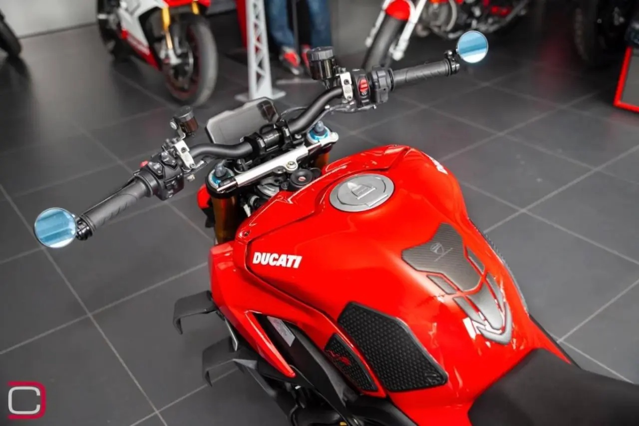 Ducati Streetfighter V4 S extrautrustad med integrerade blinkers i vingarna och tailtidy från NRC, kylarskyddsgaller, single seat och bar end mirrors från Puig.