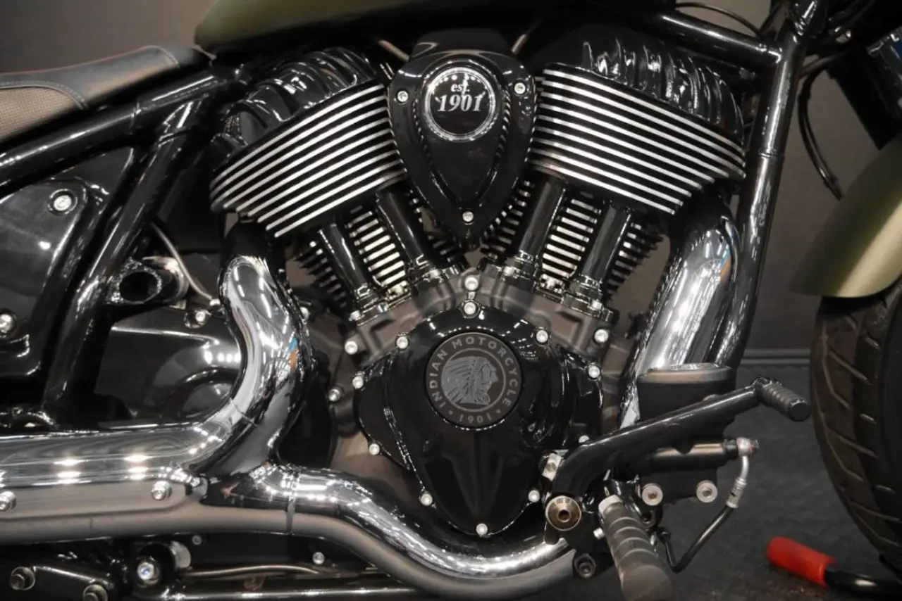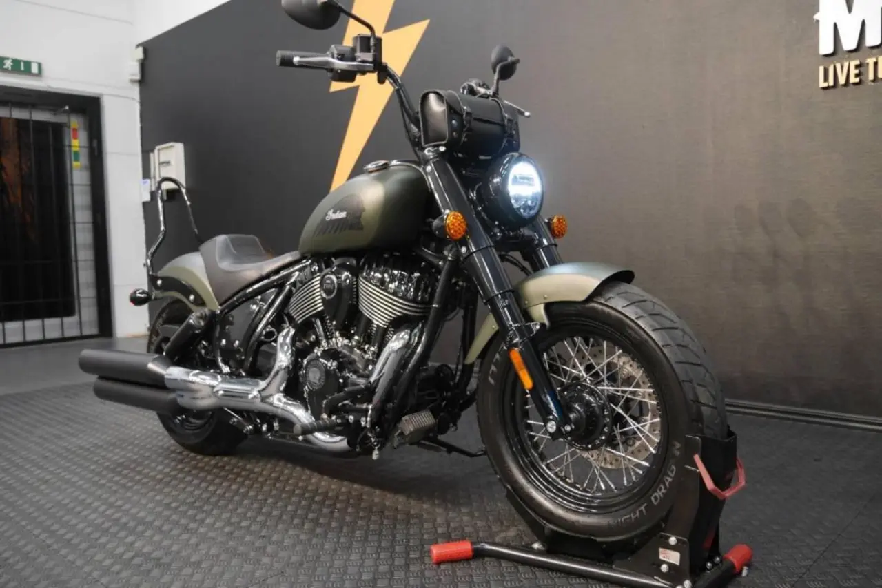 Nyinkommen Indian Chief bobber i nyskick med fyra års fabriksgaranti. (Uttagen 2023-05-19). Utrustad med bland annat: sissybar, styrväska och en Lejonkulan sidoväska med snabbfäste. Solosadel medföljer. Luftkyld Thunderstroke 116-motor med 162 Nm i vridmoment ger ett brett effektregister på alla 6 växlar