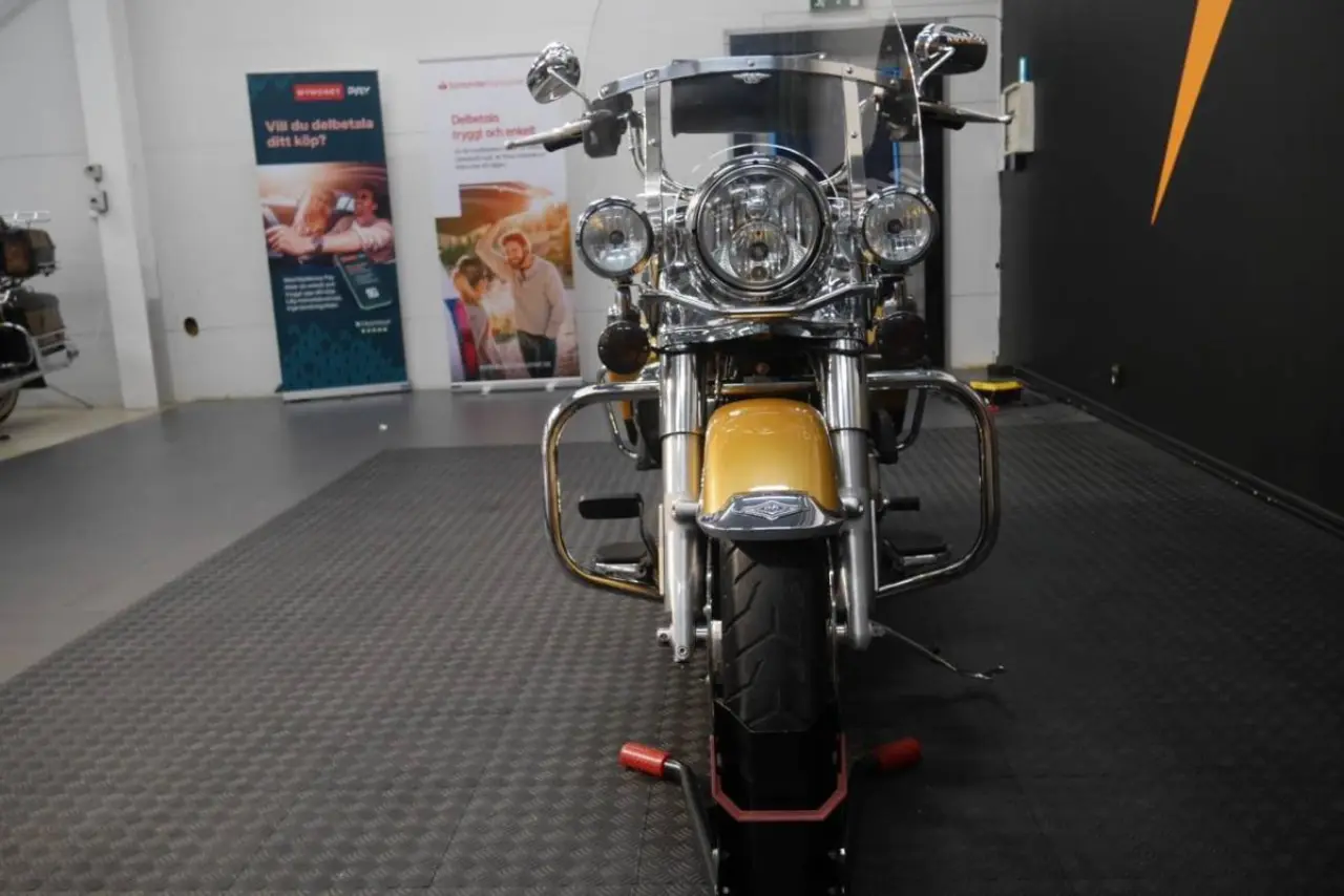 En mycket fin Road King med unik färg och M8 107 motor. Extrautrustad med bland annat Vindruta, avtagbar sissybar med ryggstöd, styrväska mm