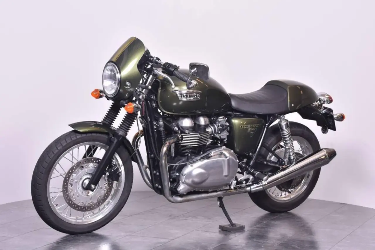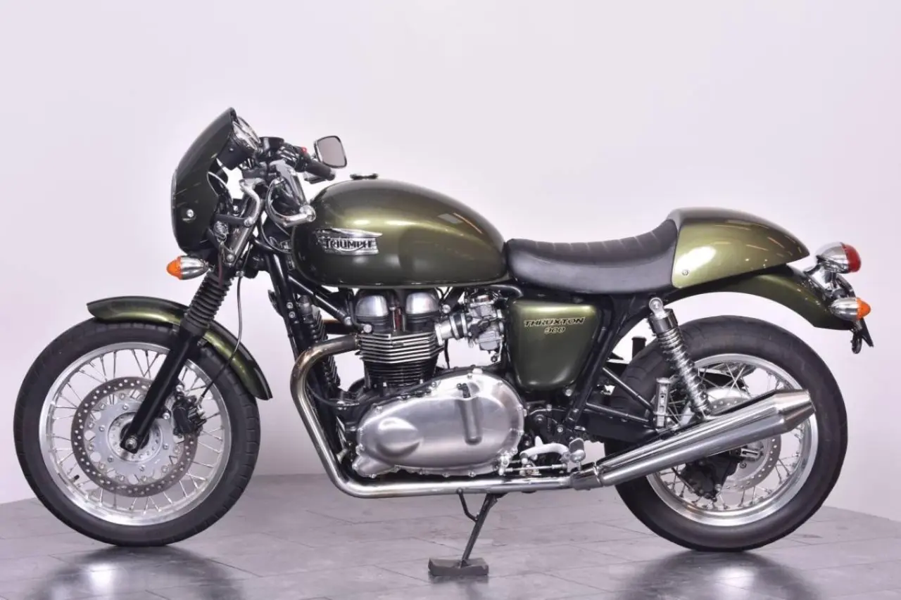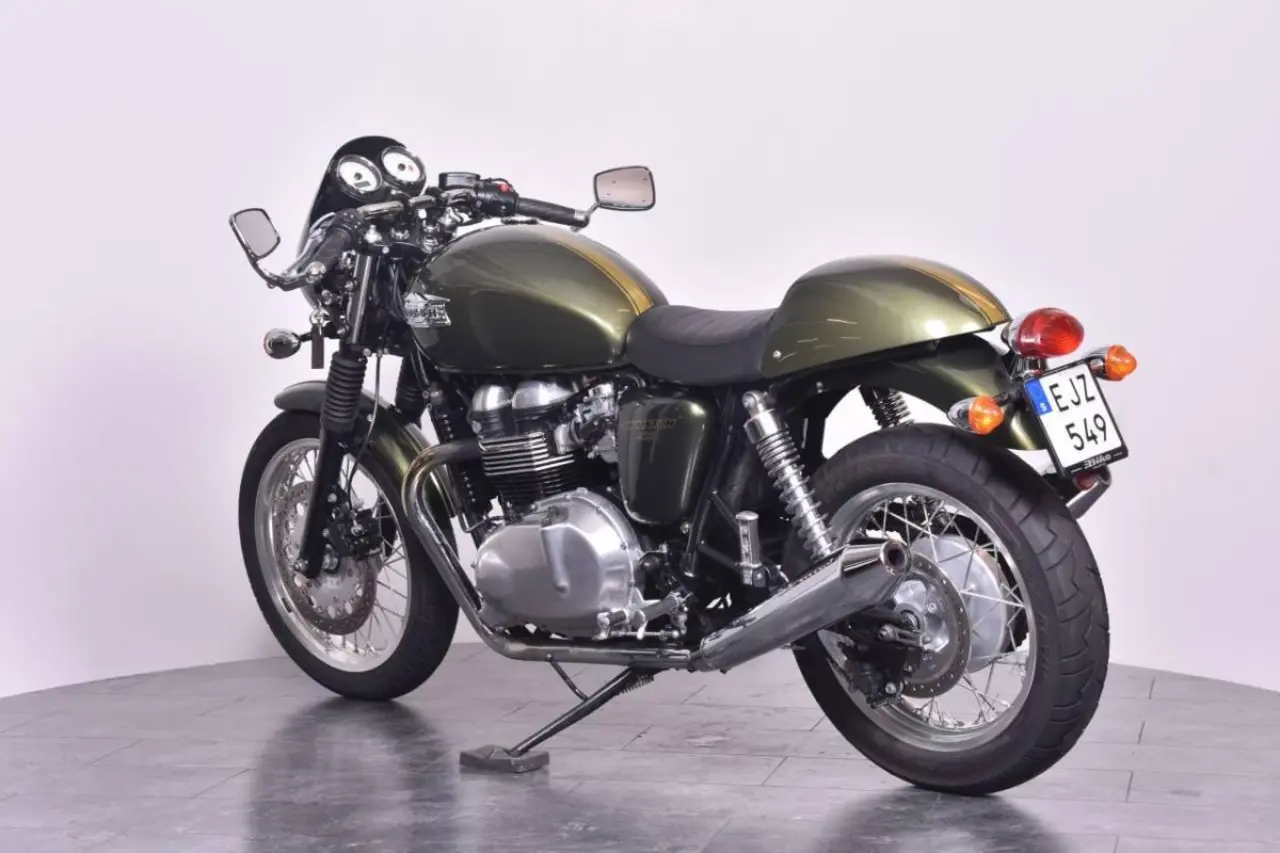Triumph Thruxton 900 i fint skick, levereras nyservad & med nytt bakdäck. *Nästa besiktning senast: 2024-07-31 *Senaste service: Bike gör basservice före leverans. *Nästa service: 3200 mil / 2024-09 *Effekt: 68hk *Garanti: 3 mån trafiksäkerhetsgaranti (samma som SMR), max 300 mil. *Extrautrustning: Slip-ons (original medföljer) *Mc:n har genomgått ett inbytestest på 48 punkter/ brister som kommer att åtgärdas innan leverans: Byte bakdäck, byte bromsbelägg bak & bas-service. *Bra att veta: Framdäck 30% kvar. Bakdäck 100% kvar. Fint skick! Instruktionsbok- servicebok och extranyckel finns. Detta... fordon är tillgängligt för onlineköp hos Bike Trollhättan. Vi erbjuder hemleverans av din MC. (gäller ej transporter norr om Gävle, samt Gotland. Bor du där kontakta oss för smidig lösning.) Med din enhet väljer du avbetalning eller kontant. Ansök tryggt och enkelt med BankID. Köpet är inte bindande för någon part och du betalar inget förrän du har haft kontakt med säljare på Bike Trollhättan. Filtrera dig till ditt fordon på vår websida här: https://https://www.biketrollhattan.se/content/89-nya-lagerfordon-att-kopa-online#/ (thruxton 865 900 rs thruxton900 bobber bonneville)