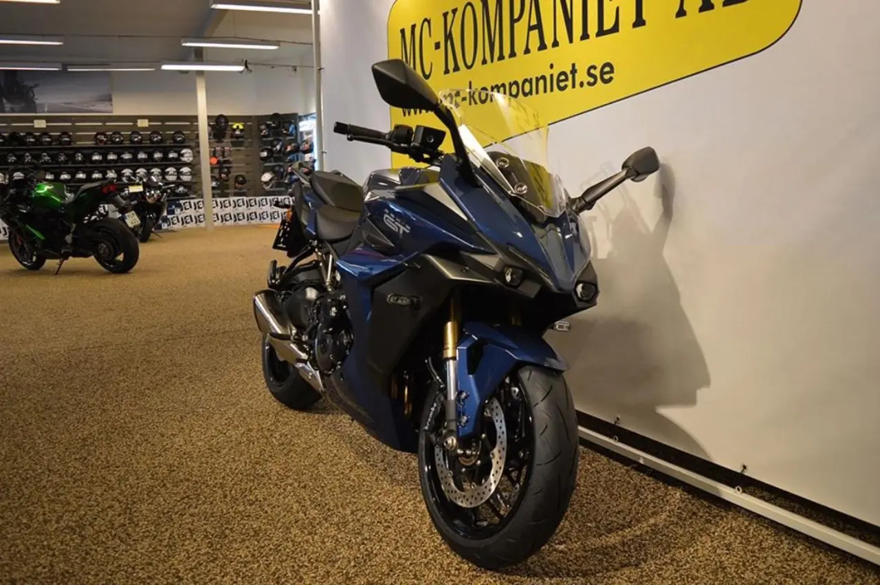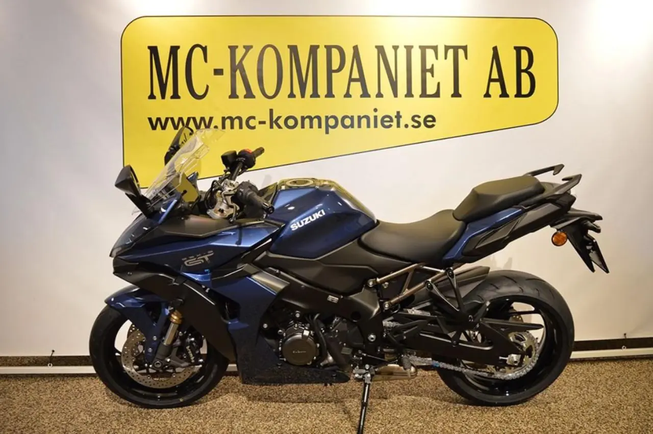 Nu säljer vi vår visningsmaskin som endast rullat 10 mil samt fabriksgaranti tom 2030-03-29. Målet med det nya GT-designkonceptet är att visuellt uttrycka prestandapotentialen, komforten och körglädjen hos denna äkta grand touring-motorcykel. Samtidigt syftar det till att förmedla förfining av en produkt som är utformad för att erbjuda avancerade funktioner, såsom exempelvis som det intelligenta systemet S.I.R.S. och smartphone-anslutning, att vara aerodynamiskt effektiv och att... vara lättare att kontrollera och bekvämare, oavsett om det handlar om touring långa sträckor med full packning och passagerare eller en spännande solo-tur. Dess skarpa linjer, radikala nya front och aerodynamiska utseende lyfter fram GT:s körupplevelse. Standardutrustad med Clutch assist system - Quickshifter upp/ned - Drive mode select i 5 lägen - Farthållare - Low rpm assist - Ny TFT 6.5 tums skärm med bl.a kart funktion m.m. 7 års garanti. Köp till original sidoväskor färganpassade 12 995:- Vi tar gärna inbyte och hjälper till med finansiering. Vill du ha din nya hoj hemlevererad så löser vi även detta. Vi har en stor tillbehörsavdelning för både dig och din mc. Välkommen in till oss på MC-Kompaniet! sök GSXS GSX-S 1000 GSX gt GSX-S1000GT 1000gt