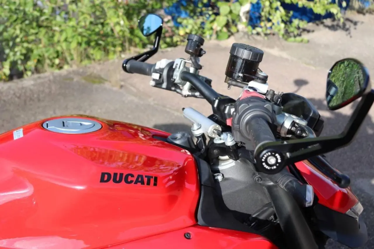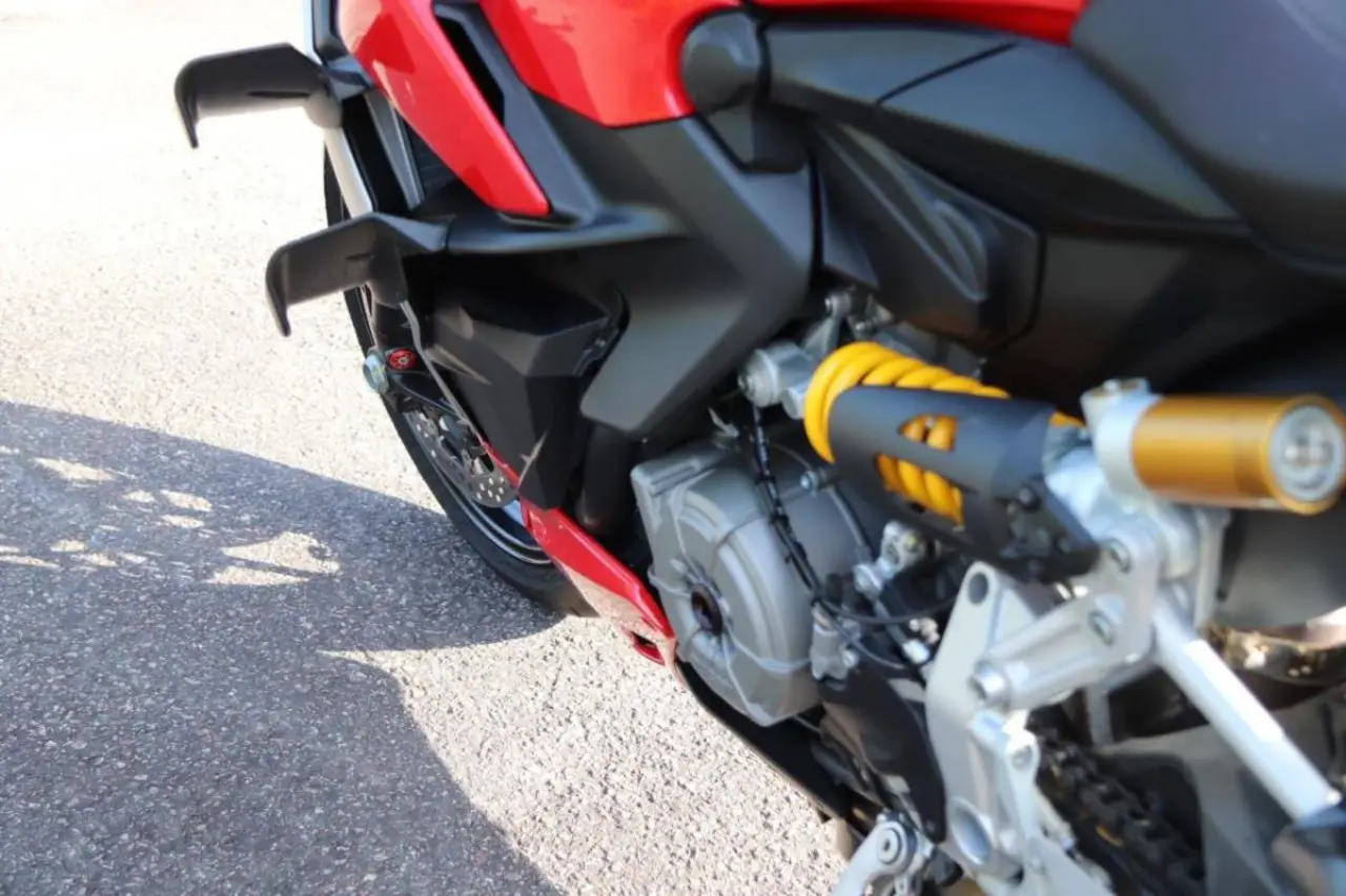 Ett sport monster för gatan. Ducati Streetfighter V2 är den perfekta hojen för härliga turer i solnedgången eller snabba varv runt banan. Denna motorcykel är även extra utrustad med styrändsspeglar, kolfiber vingar, kolfiber skärmar fram & bak samt tankskydd.