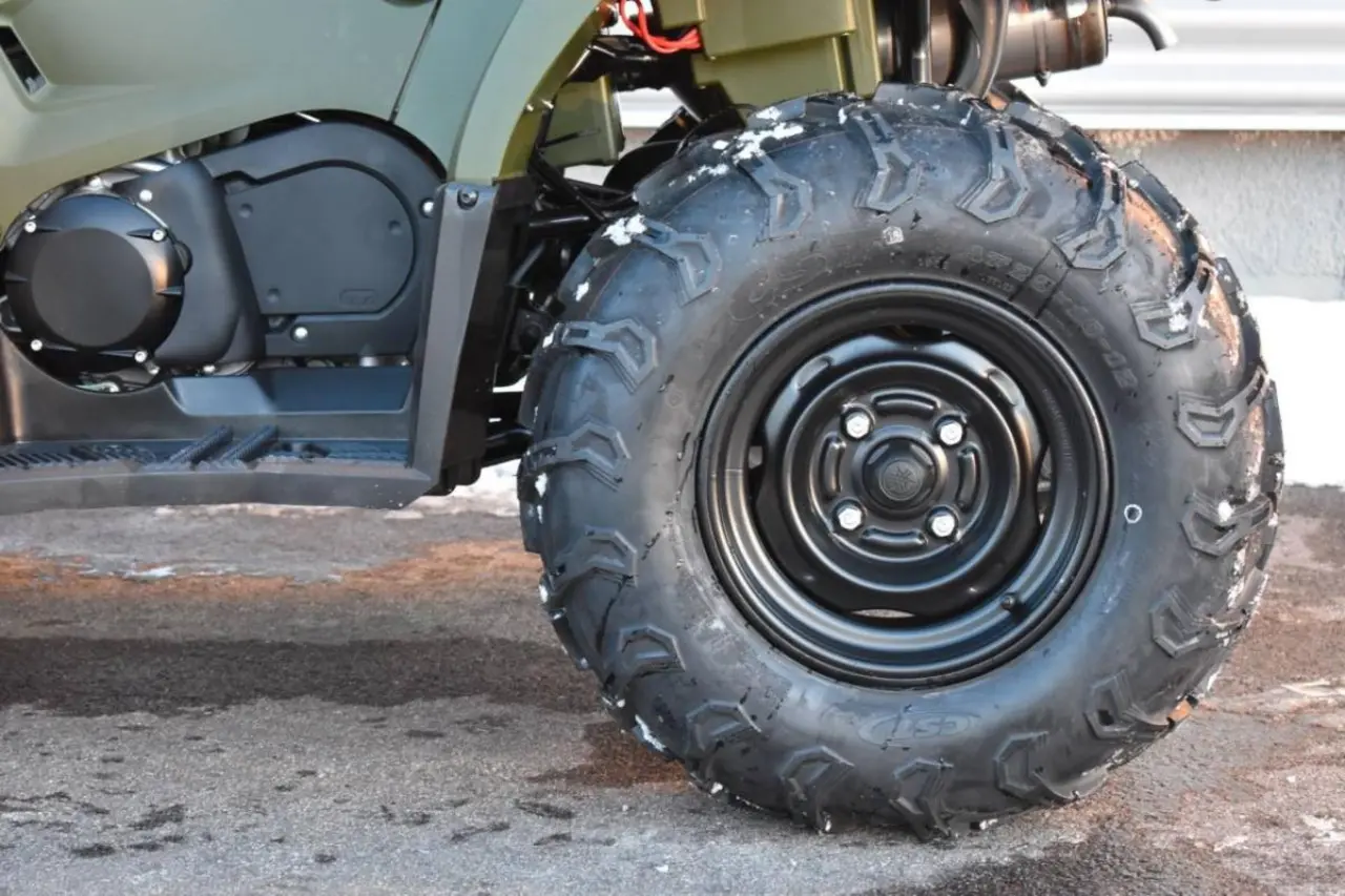 Kodiak 450 sitter de två extra breda framdäck AT25x8-12 och bakdäcken AT 25x10-12 med terrängmönstrade däck ger den dig de extra greppet när du behöver det.