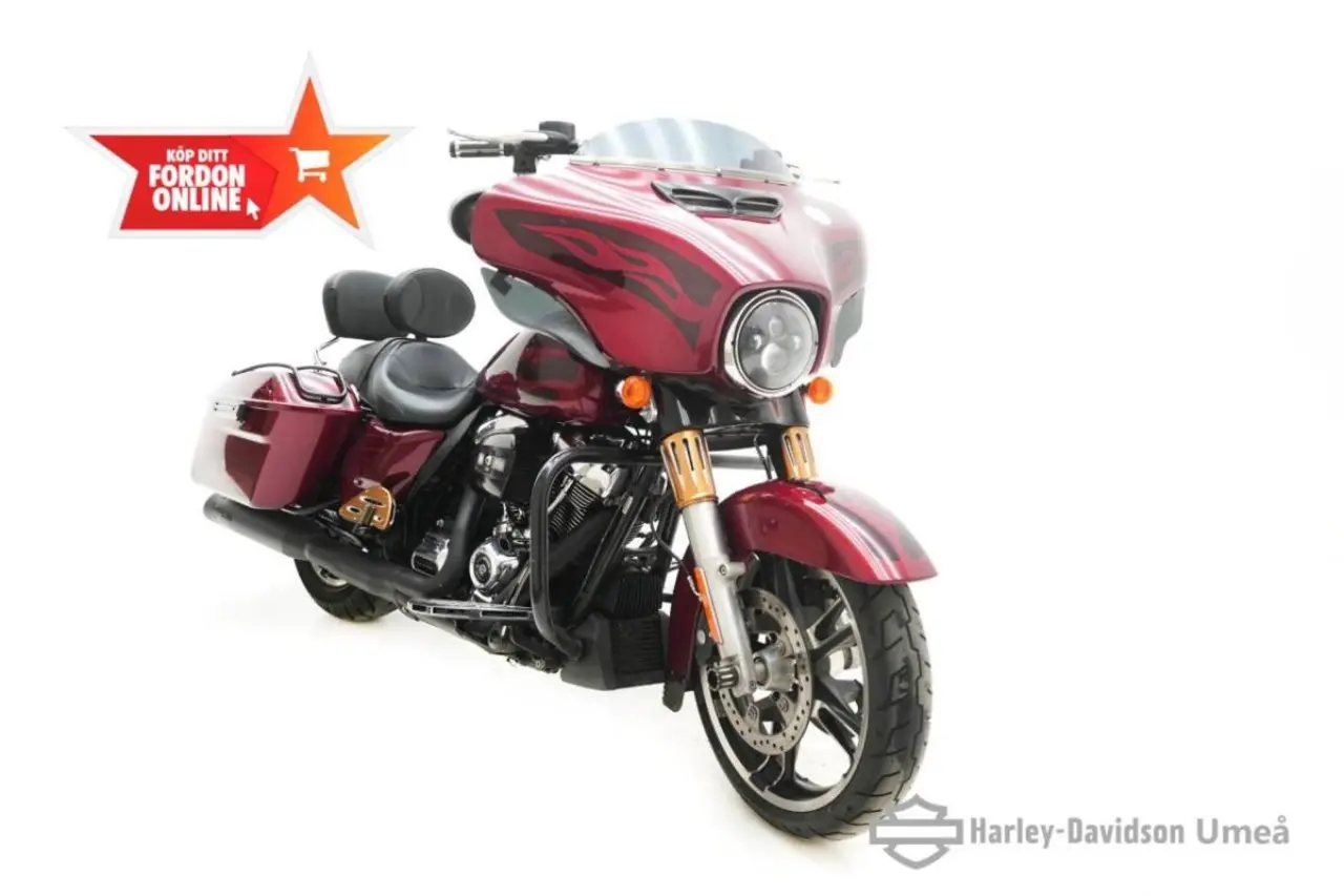 H-D Street Glide Special! Hard Candy Custom lacken! Långmilare som är rikligt utrustad med: Fotplattor runt om och även detaljer kring kåpa och tankkonsol, Stötdämpare skydd i samma kollektion.