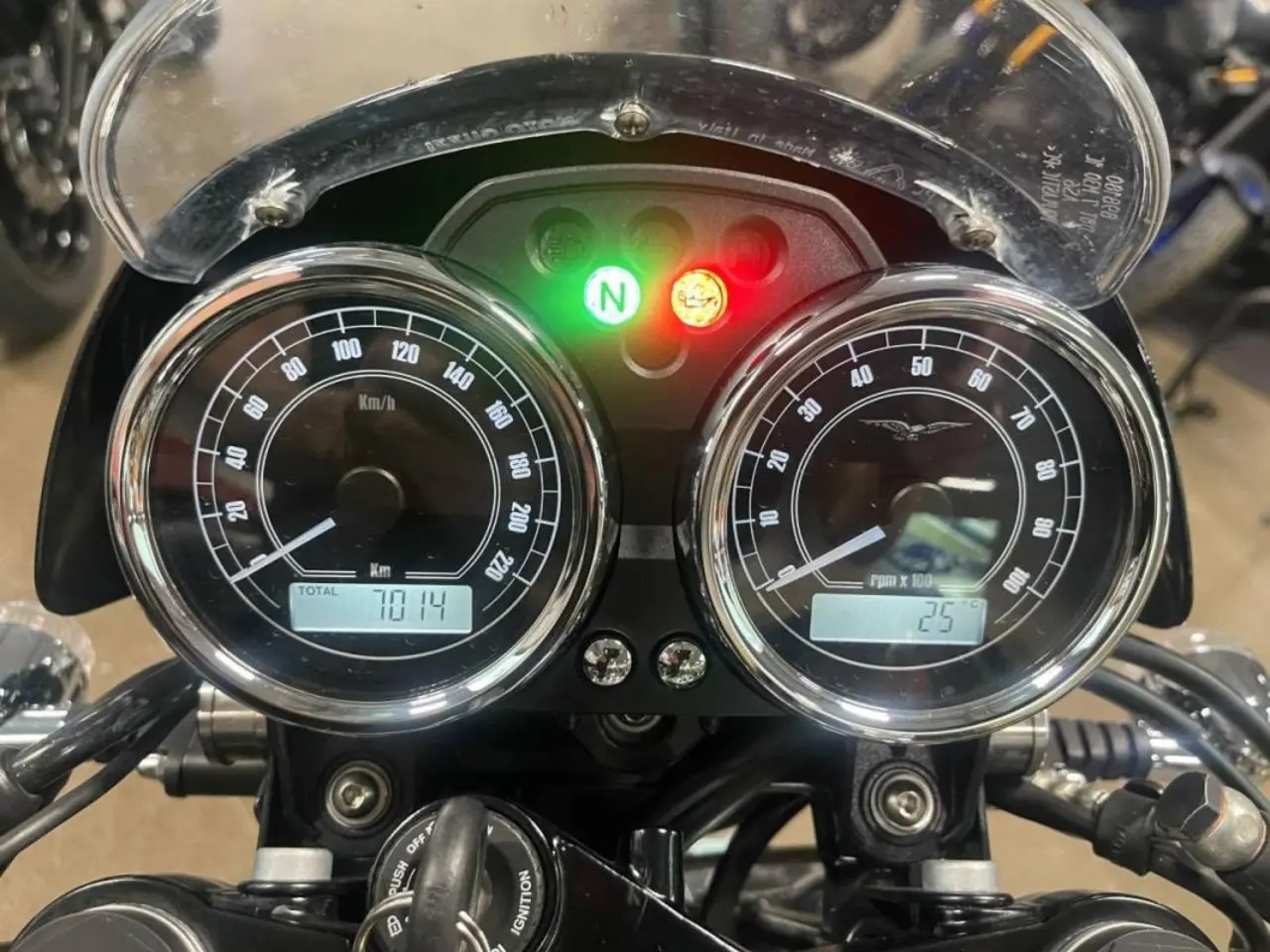 Superfin Moto Guzzi V7 Racer 2015 med endast 700mil på mätare. Senast servad i år (2023) vid 621 mil. Extra utrustad med singelsadel. Original sadel samt kutslock medföljer. Augustini avgassystem (original på denna modell). Numrerad utgåva. En otroligt cool hoj. Ring för mer info 021-124820. bobber street bolt scr classic gussi mg motor guzz