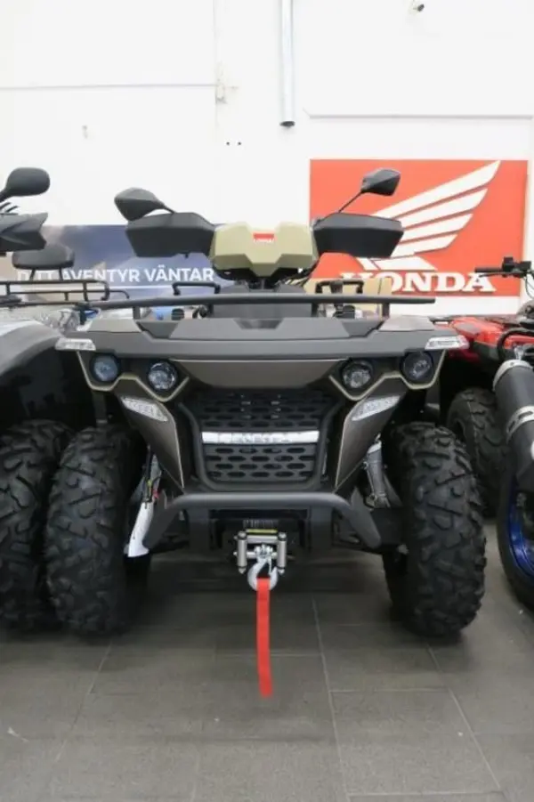 565-L EPS är utrustad med den nya encylindriga motorn, bränsleinsprutning gör att motorn har mer kraft för hårt arbete och snabba accelerationer. Modern bränsleinsprutning ger låg konsumtion och låga utsläpp. Kraftöverföringen tillhandahålls av en pålitlig automatisk växellåda från den ledande kanadensiska tillverkaren CV Tech, som också ä utrustad med ett parkeringsläge P. Den högre markfrigången förbättrar avsevärt körbarheten genom svår terräng. Det utökade axelavståndet, den elektriskt inkopplingsbara fyrhjulsdriften med låsbara främre differentialer gör det lätt att hantera grov terräng. Bakre... delen är uppdaterad med nya handtag för att öka säkerheten för passageraren.