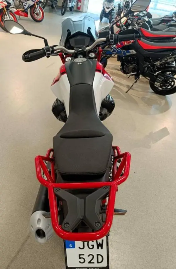 Oavsett var ditt äventyr bär erbjuder denna Moto Guzzi mesta möjliga körglädje. Ensam eller medpassagerare, runt staden eller jorden. En unik kombination av italienskt hjärta i form av en underbar V-twin