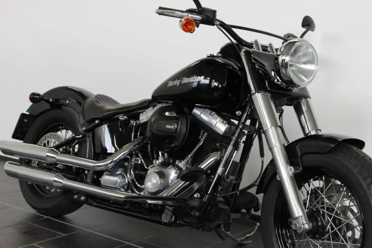 (B1438) En softail slim med fina 103" motorn på 1690cc och med 6 växlar. Låg i sitthöjd så den passar de flesta som vill ha en fin glidare. Vill du sätta på luft och buller från tex Vance&Hines så fixar vi det till rätt pris! ABS-bromsar såklart ock larm med startspärr samt nyckelfri körning. Lika kul i stan som på din favoritväg precis som softtail FLSS och Breakout FXSB. Från 1331:-/månaden vid 20% kontantinsats (29980 kr). Vi gillar inbyten och räknar gärna på ett mellanpris. Ring eller mejla oss för vidare information. BIKEMAN SKICKAR DIN NYA MC HEM TILL DIG! (Gäller ej Gotland.) Uppservad... till Bikemans höga standard - DÄRFÖR LÄMNAS 3 MÅNADERS GARANTI.