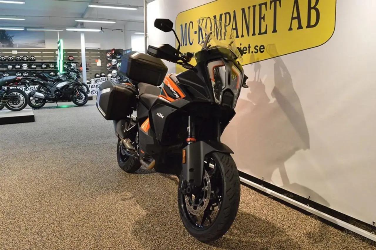 Utrustad med stora Techpack paketet som innehåller Rallypack/quickshifter +/suspension pro/motor slip reg/hill hold/adaptive brake light. Full servicehistorik, nyservad, nytt framdäck, bakdäck c:a 60%, besiktigad till 2025-08-31, original sadlar finns, Vi tar gärna inbyte och hjälper till med finansiering. Vill du ha din nya hoj hemlevererad så löser vi även detta. Vi har en stor tillbehörsavdelning för både dig och din mc. På fordon yngre än 5 år lämnar vi 3 månaders garanti, på fordon äldre än 5 år lämnar vi 1 månads garanti. Välkommen in till oss på MC-kompaniet! Sök Mc kompaniet 1290superadventure...