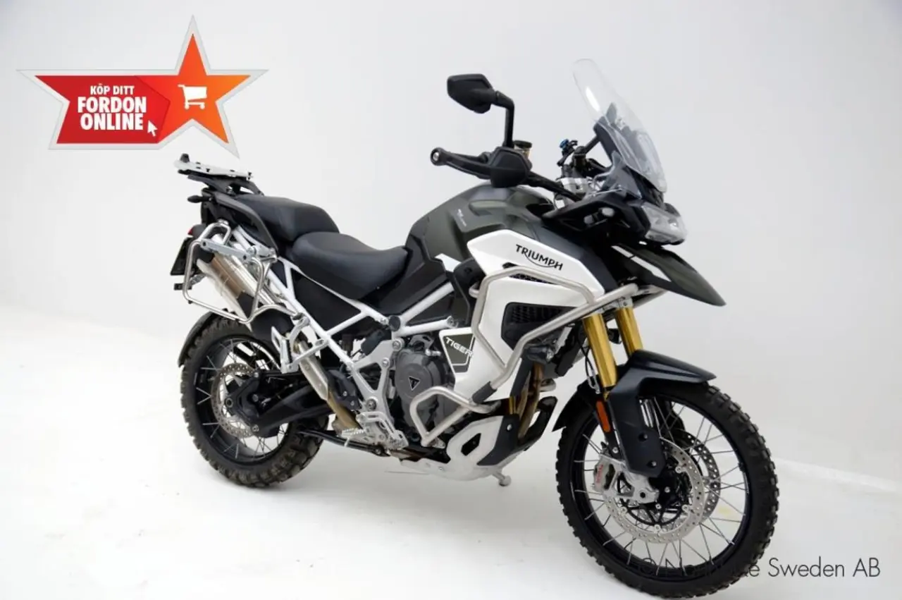 I princip nyskick Triumph Tiger 1200 Rally explorer. Explorermodellen är utrustad med döda vinkel-sensorer i speglarna, TPMS sensorer....