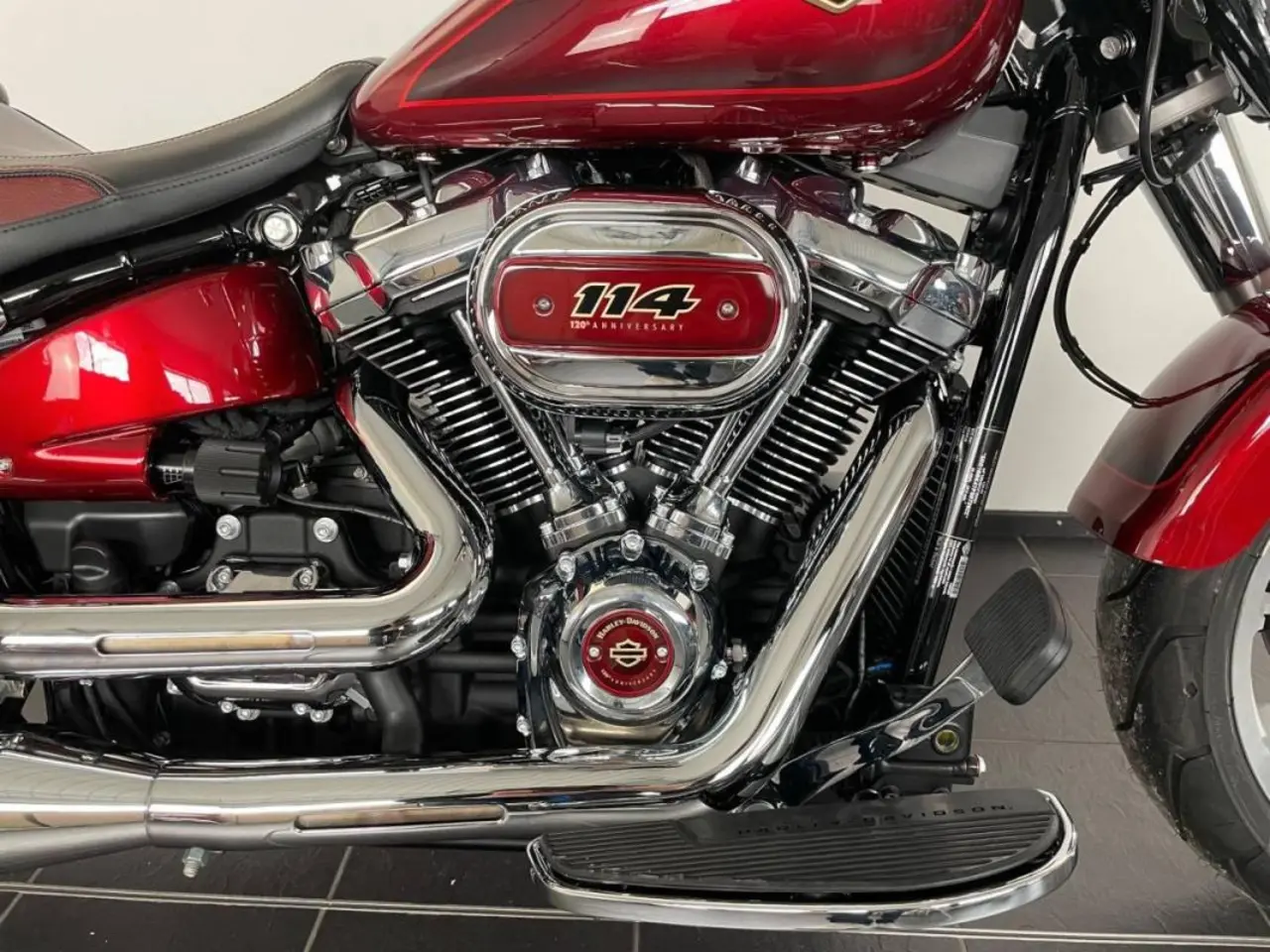 (N933) Sprillans ny Fat Boy i 120-års jubileumsutförande nummer 1126 av 3000 gjorda. Utrustad med nya Milwaukee-Eight 114" motorn, farthållare, ABS-bromsar och mycket mer. En unik hoj som drar ögonen åt sig. Fatboy är lika rolig på din favoritväg som FLFBS och FLSB. Från 3097:-/månaden vid 20% kontantinsats (69780 kr). Vi gillar inbyten och räknar gärna på ett mellanpris. Ring eller mejla oss för vidare information. BIKEMAN SKICKAR DIN NYA MC HEM TILL DIG! (Gäller ej Gotland.) HOJEN LEVERERAS MED 24 MÅNADERS FABRIKSGARANTI.
