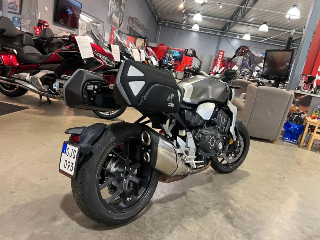 Utrustad med: Sidoväskor, färddator.