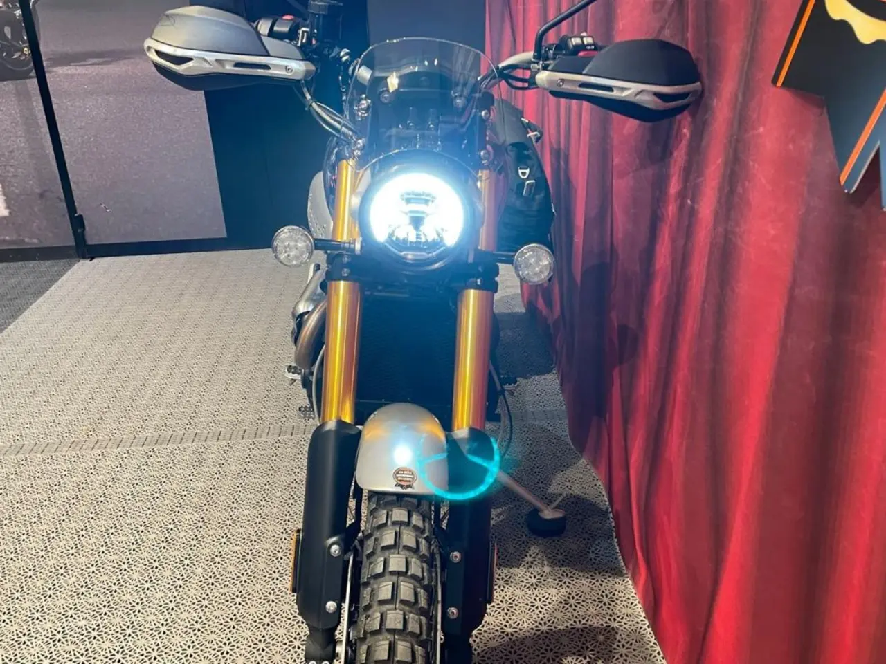 En riktig "grusbuse", Scrambler 1200 XE med Michelin Anakee Wild monterat på de klassiska ekerhjulen. Mjuk sidoväska, liten ruta, Höjd framskärm, Multifunction Rear Light, Brace Handlebar, alla tillbehör är Triumph original. Vi har också plockat på ett helsystem från ZARD bara för att få det sköna ljudet från Triumphs härliga parallelltwin.