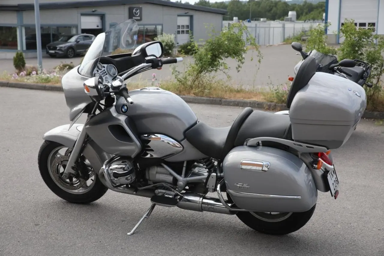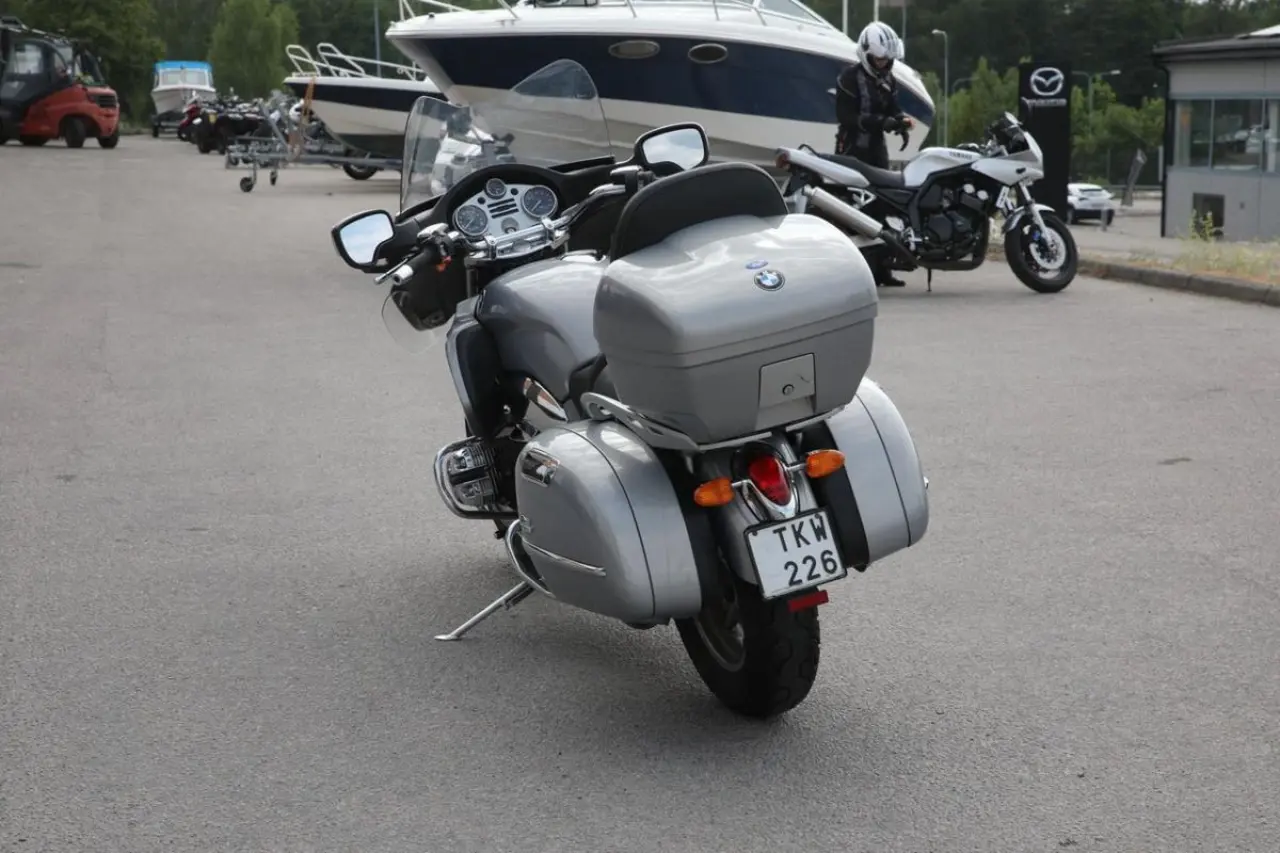Här är ett fint ex av den bildsköna R 1200CL med rejält tilltagen vindruta original topbox och sidoväskor i lackat utförande samt utrustad med farthållare.