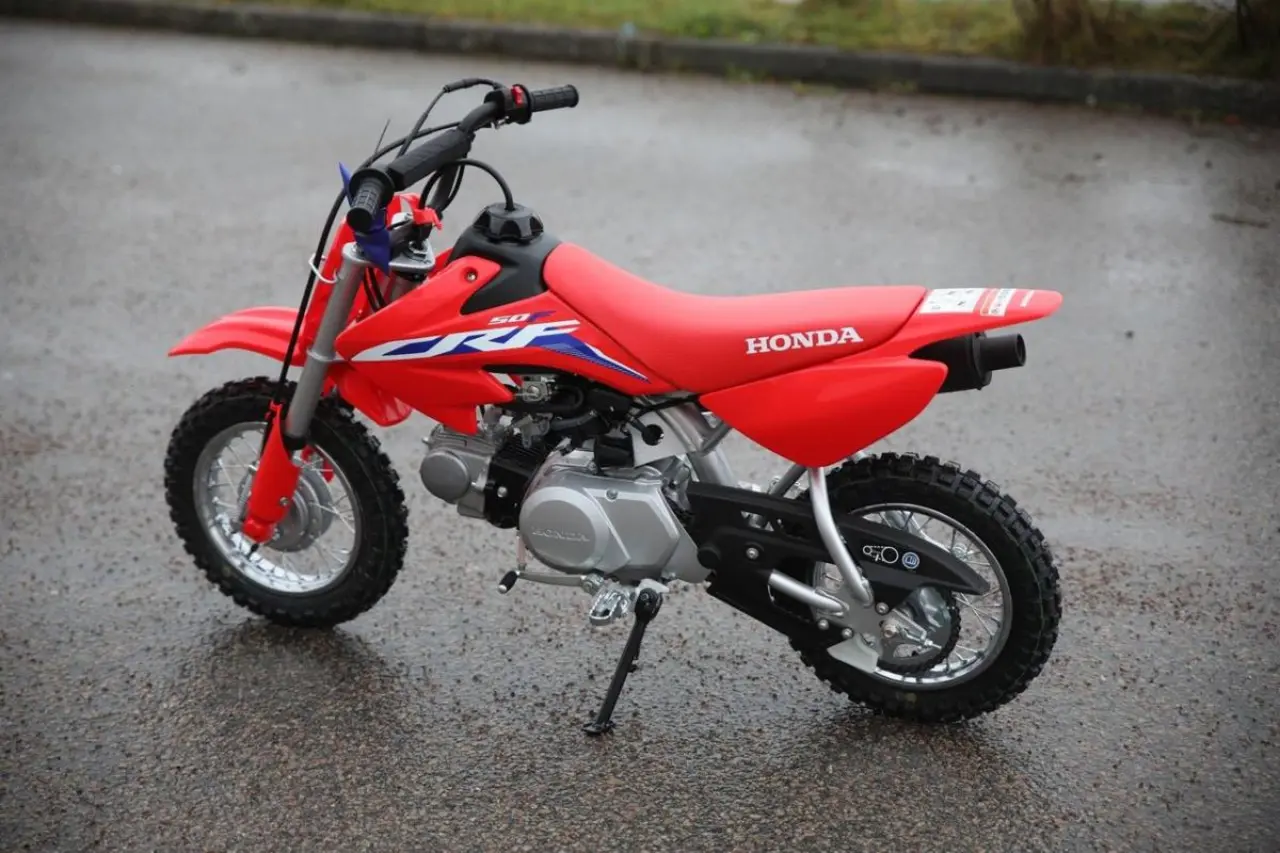 Hondas CRF 50F är den perfekta nybörjarhojen för barn som vill prova på motocross. Den lilla maskinen har en körglad och driftsäker fyrtaktsmotor på 49 kubik med praktisk automatkoppling som underlättar att komma i gång med körningen. Nybörjare brukar också känna sig trygga med de små 10-tumshjulen och den låga sadelhöjden. Till 2022 uppdateras CRF 50 F med färgsättning och dekaler från storasyskonen CRF250R och CRF450R.