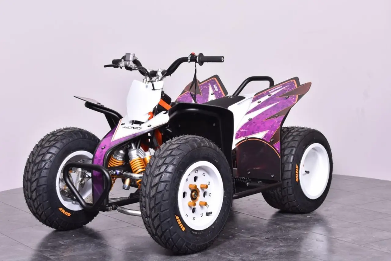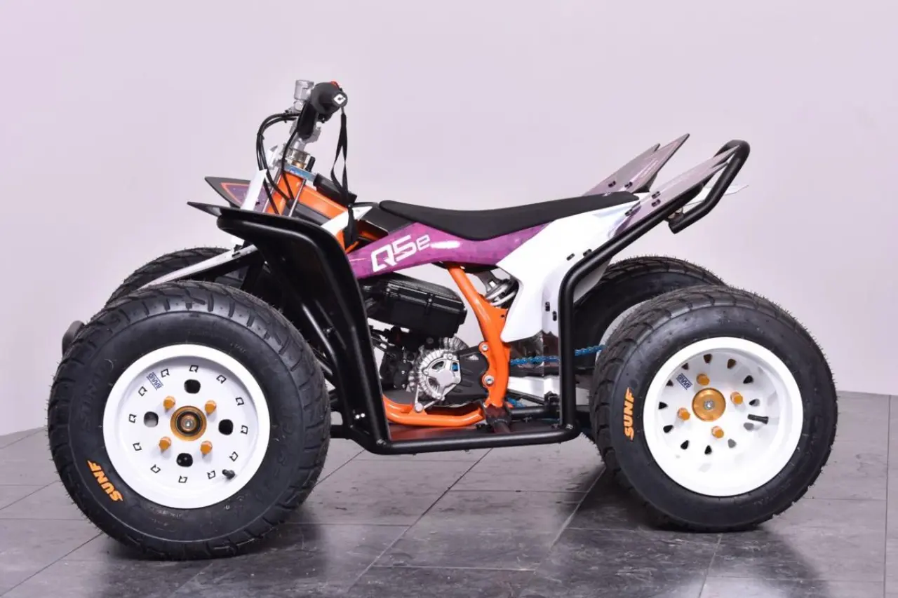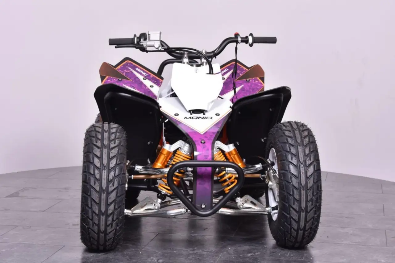 Moniq Q5e är en helelektrisk quad avsedd för såväl nybörjare som tävlande juniorer. Helt utan miljö- och ljudförorening bryter den ny mark bland mini-quads inriktade mot tävling. Konstruerad av komponenter i världsklass ger dig en quad av absolut högsta kvalitét, redo för såväl tävling som lek.