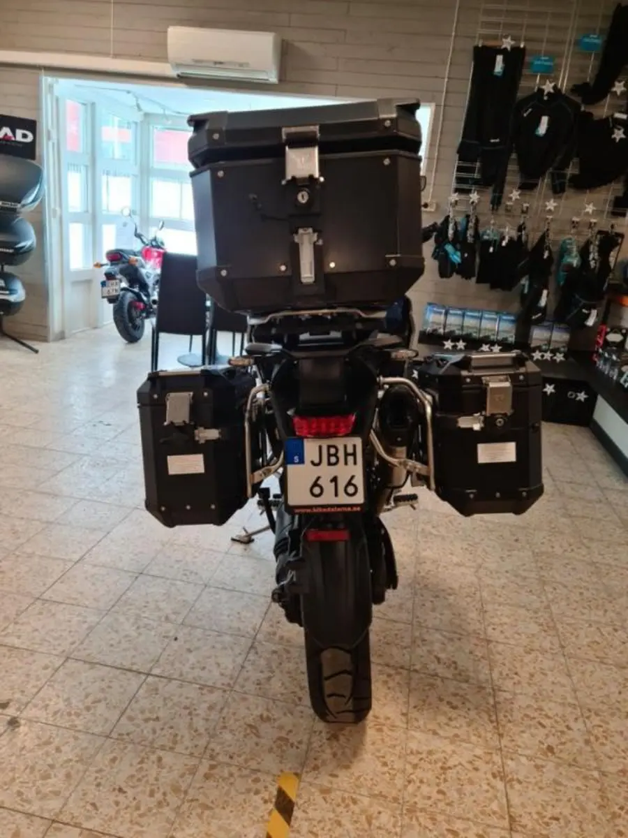 Medföljande packväskor och top-box i svart aluminium