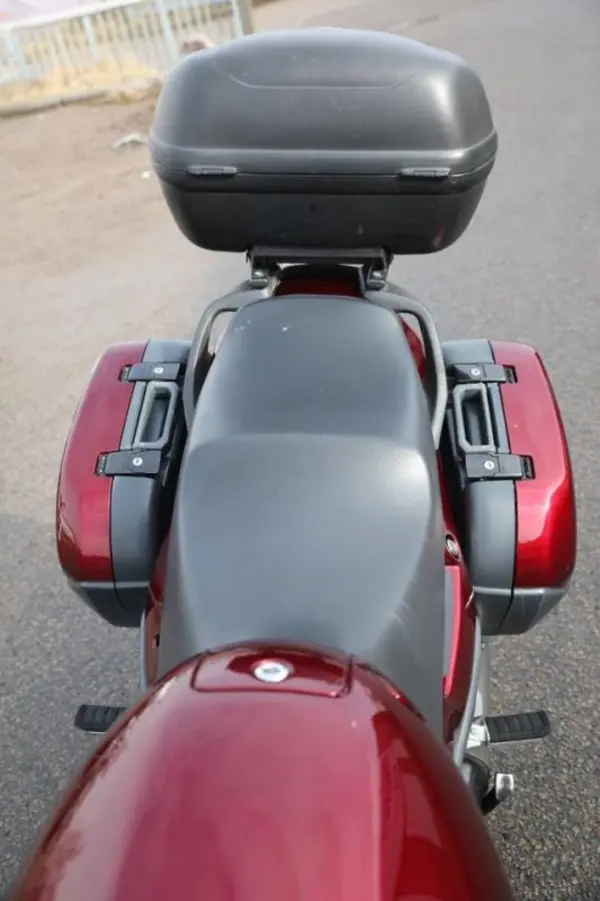 Här är ett svensksålt ex i ett fint skick för sina mil som utrustats med original sidoväskor och en Givi-toppbox. Besiktigad till 2025-06-30.