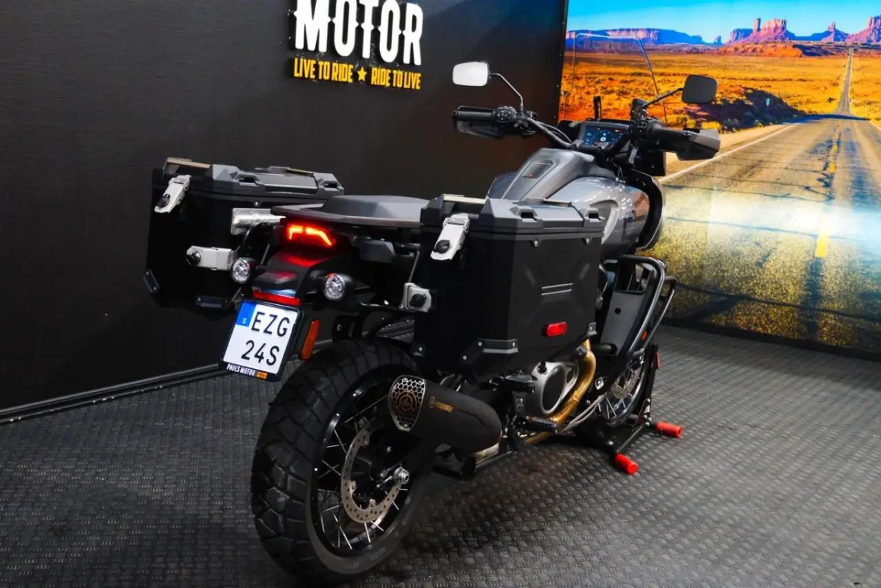 Är du redo att ge dig ut på ditt livs äventyr? Då är Harley-Davidson Pan America 1250 Special den perfekta motorcykeln för dig. Den här kraftfulla och robusta maskinen är byggd för att klara av allt du kan kasta på den, från asfalterade vägar till grusväg och terräng. Utrustad med bland annat Kesstech Avgassystem som ger möjligheten att växla mellan de olika ljudhanteringslägena genom att trycka på knappen i vilken hastighet som helst
