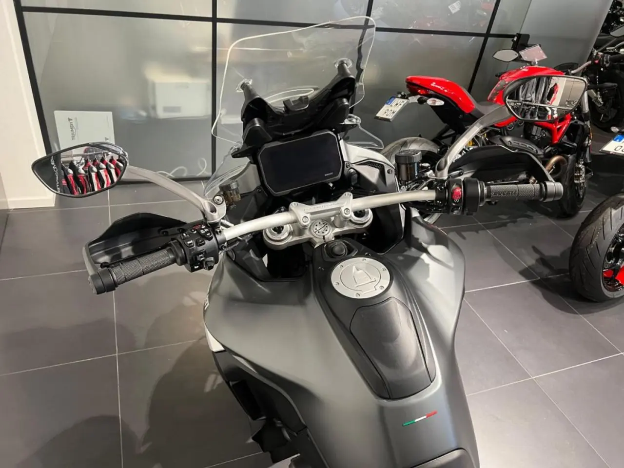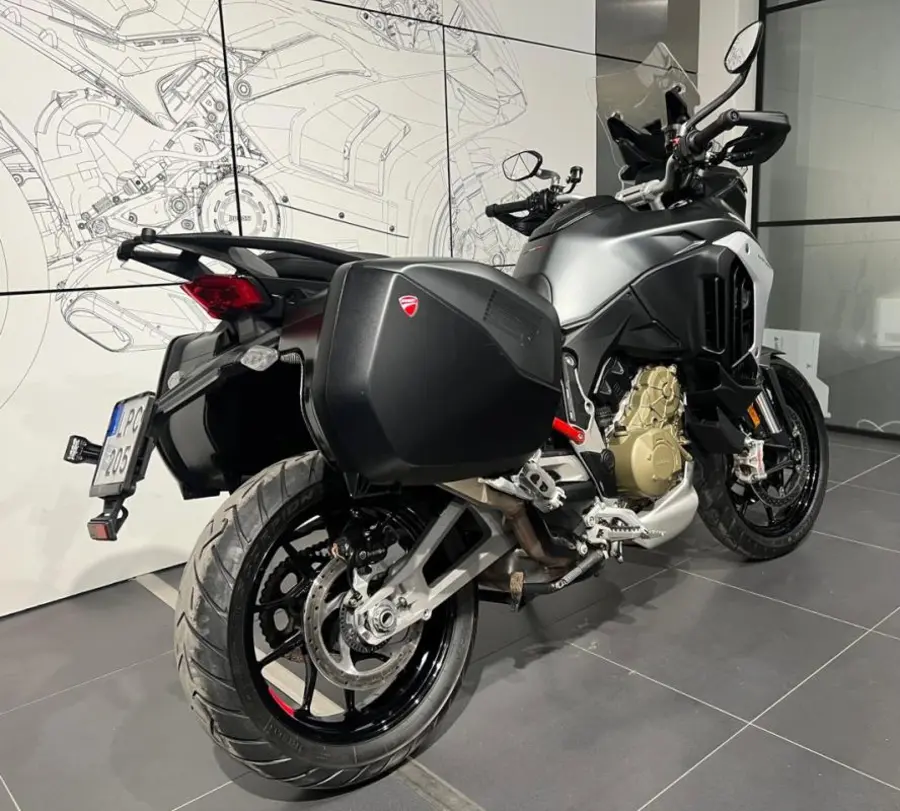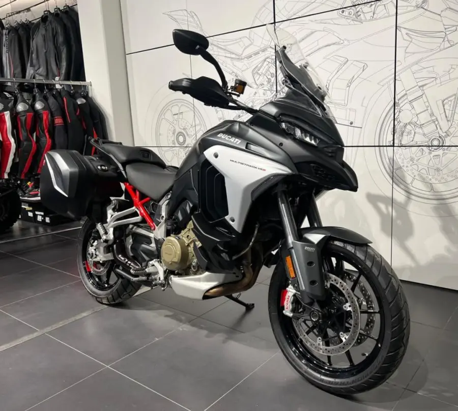 Ducati Multistrada V4 S Travel & Radar utrustad med bland annat kylarskyddsgaller, sidoväskor, värmehandtag, sadelvärme för förare & passagerare, handguards, centralstöd, adaptiv farthållare, dödavinkeln-varnare, quickshift och körlägesväljare.