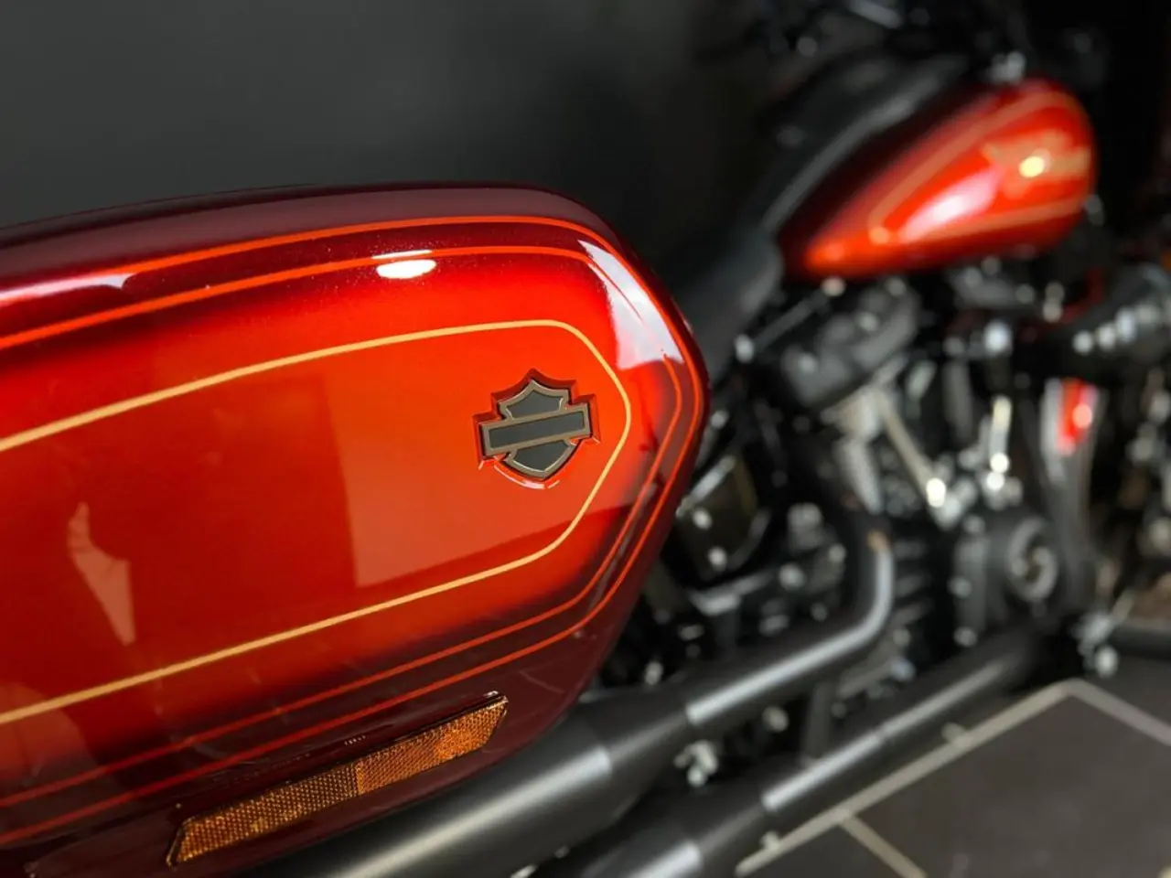 Denna FXLRST har ett utfört konstverk av Gunslinger Custom Paint i Colorado, som innehåller lager av El Diablo Bright Red, Bright Red Sunglo, Dark Red och Dark Red Pearl. Helt unik och bör ses i verkligheten!