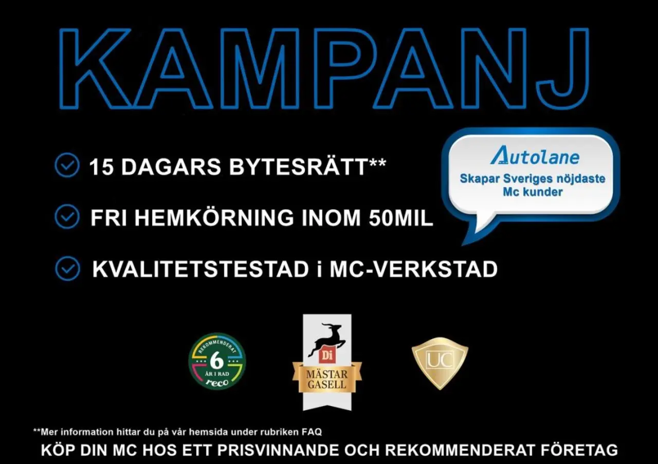 Vi ERBJUDER även VIDEOSAMTAL så att du kan se ditt nya fordon LIVE. Hör av dig för mer info samt eventuellt leveransdatum hem till dig. Finansiering löser vi snabbt smidigt och enkelt då vi samarbetar med de flesta förekommande banker på marknaden. Vi kan erbjuda garantier på ditt fordon upp till 30 månader! VI TAR BÅDE BIL OCH MC SOM INBYTE. Alla våra fordon har genomgått en noggrann kvalitetstest i vår fullserviceanläggning. En administrationsavgift på 995:- tillkommer på alla våra fordon. All info på... och fler bilder ser du på https://www.autolane.se eller kolla upp oss på Facebook och se vad våra kunder tycker om oss. Varmt välkomna! Autolane