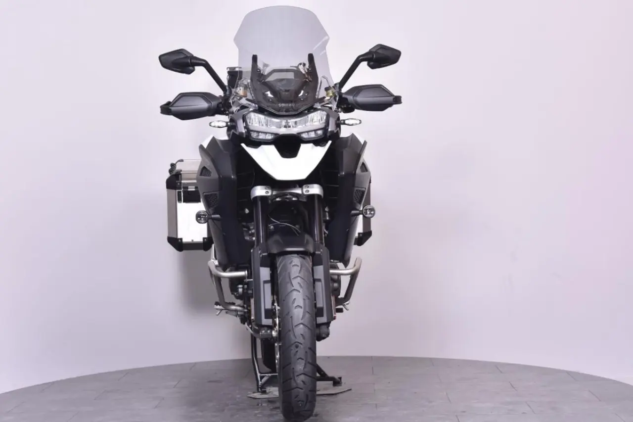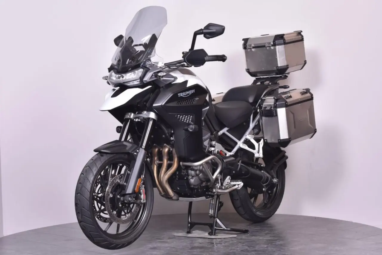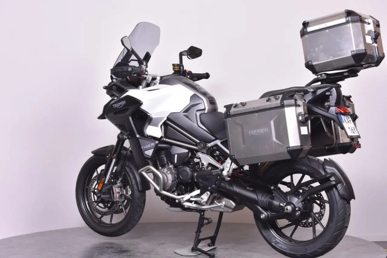 Triumph Tiger 1200 GT Explorer rikligt utrustad med 3 väskor & slip-on. Kan finansieras fr. 1415:-/mån. Uttagen 2024 & enbart 1 tidigare brukare. *Nästa besiktning senast: 2028-01-31 *Senaste service: 100 mil / 2024-03-14 *Nästa service:1600 mil / 2025-03-13 *Effekt: 150hk *Garanti: Fabriksgaranti t.o.m. 2027-01-16 *Utrustning:1160cc T-plane triple engine, 5 Riding modes, 30 litre aluminium fuel tank, Brembo M4.30 Stylema, Showa semi-active damping, Full-colour 7” TFT, My Triumph Connectivity System, Blind spot radar, Keyless, Cruise control, Triumph shift assist, Hill hold control, TPMS, Adaptive... cornering light, LED Auxiliary Lights, ABS and Traction Control, Hand guards, aluminium skid plate, engine protection bars, Heated Grips, Heated Rider and Pillion Seats. *Extrautrutsning: , sidoväskor, toppbox, Puig Touring framruta, Evotech Bar End Weights, Slip on + original *Mc:n har genomgått ett inbytestest på 48 punkter. *Bra att veta: Framdäck 85% kvar. Bakdäck 85% kvar. Fint skick! Instruktionsbok- servicebok och extranyckel finns. Månadskostnad baserat på: 40% Kontantinsats. 50% restvärde 36 månader löptid. Detta fordon kan köpas online på https://www.biketrollhattan.se/mconline, där kan ni också se mer om finanslösningar och transport av ditt fordon. (triumph tiger 1200 gt explorer tiger-1200 1200gt rally gt-pro)